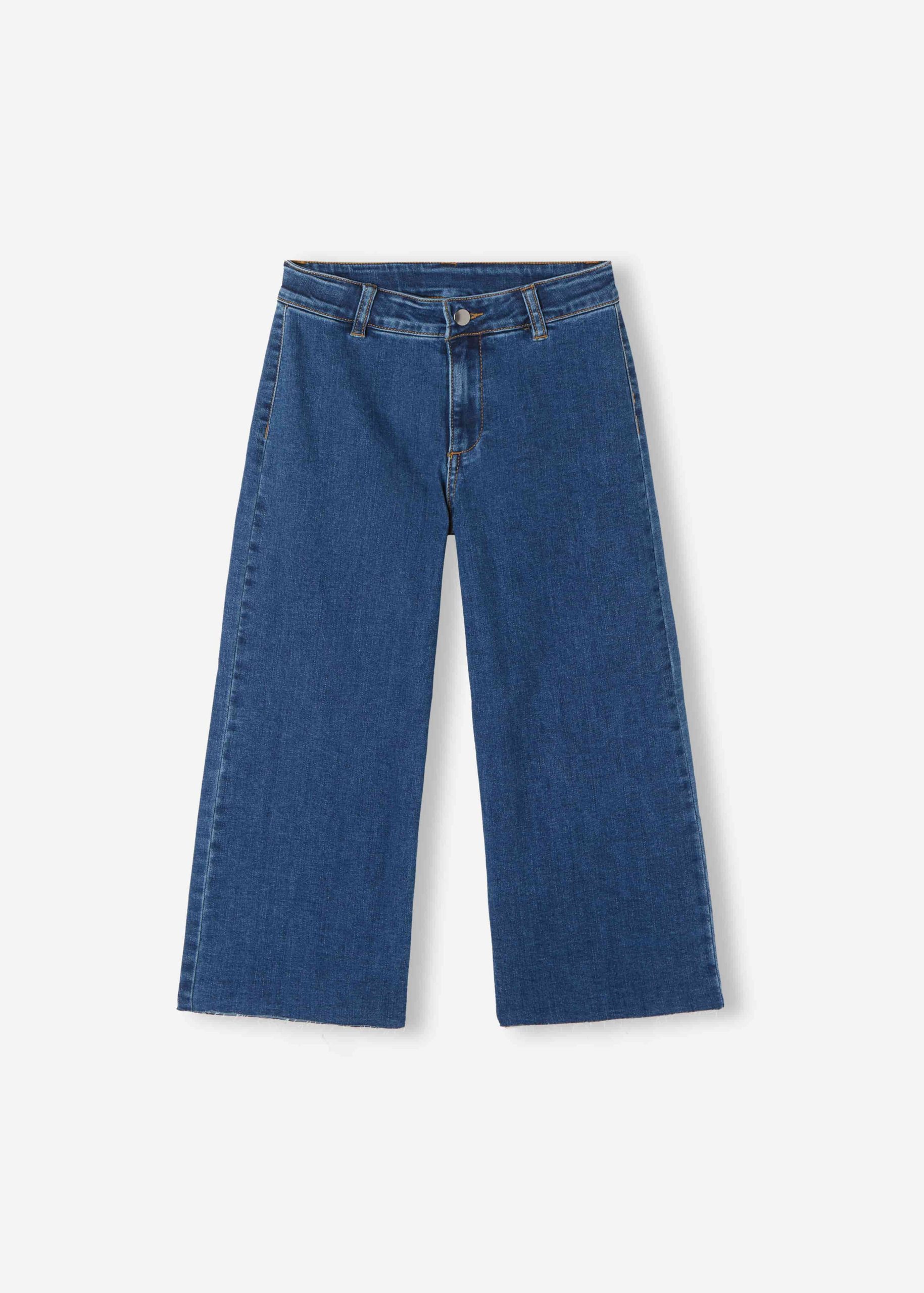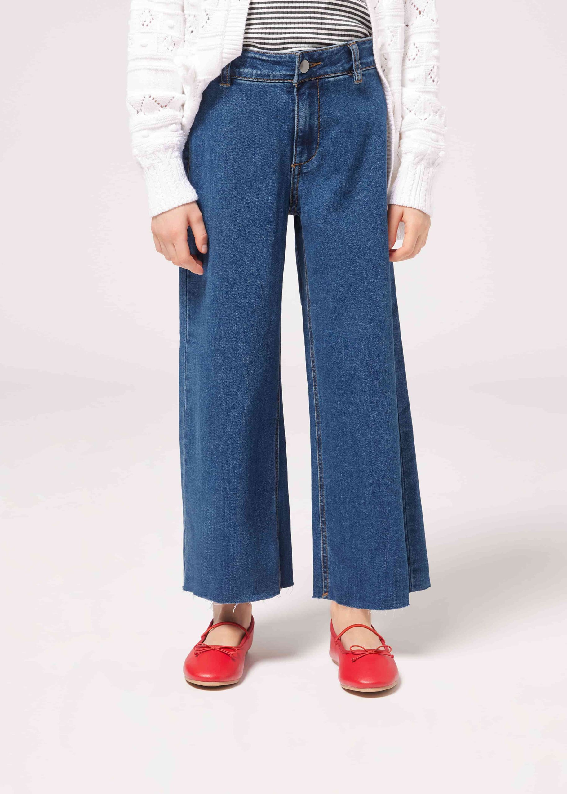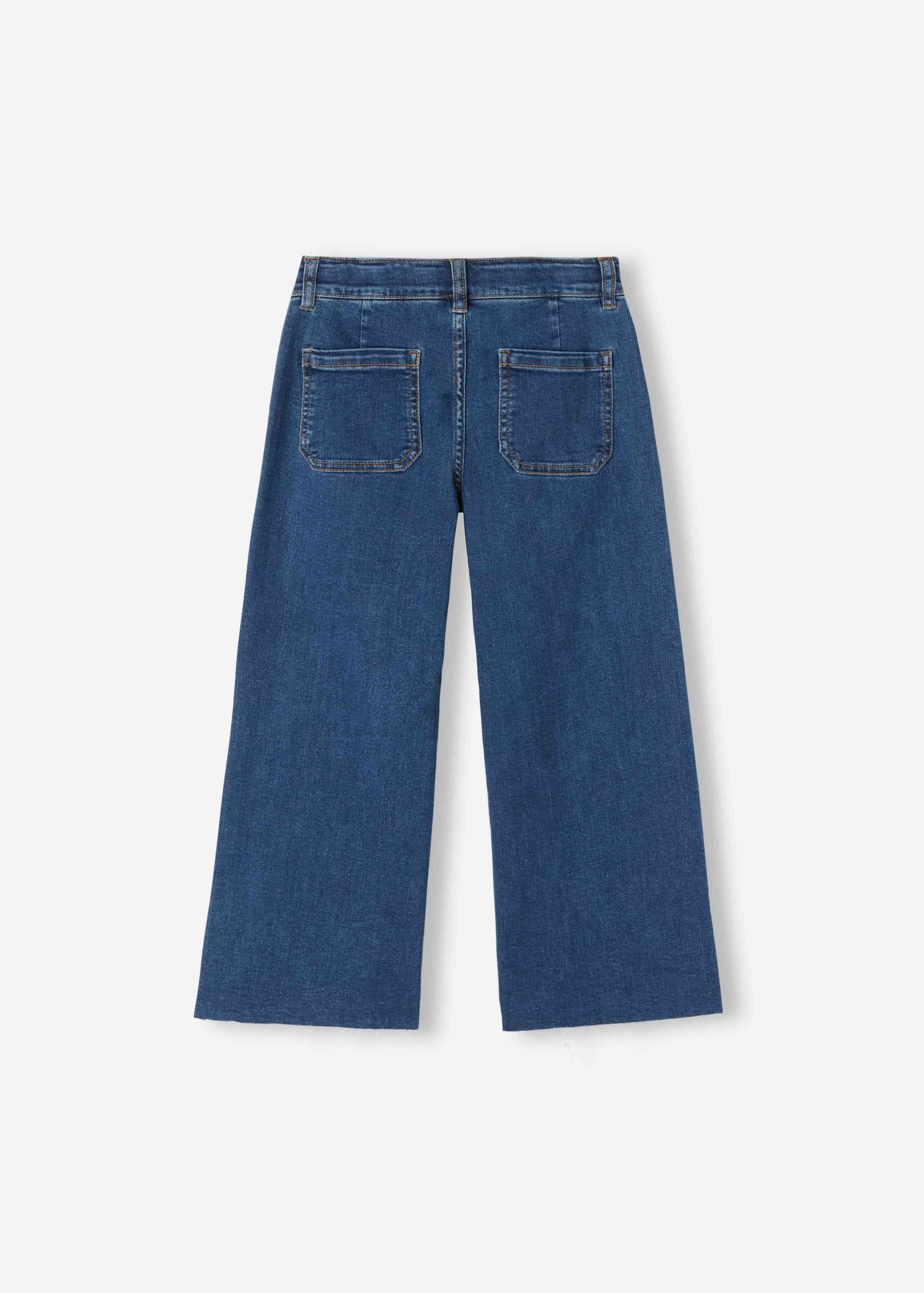 Girls’ jeans in tie-dye denim with a wide fit at the hips and sides that flares out at the hem. Adjustable elasticated waist for the perfect fit, flap with zip and button.