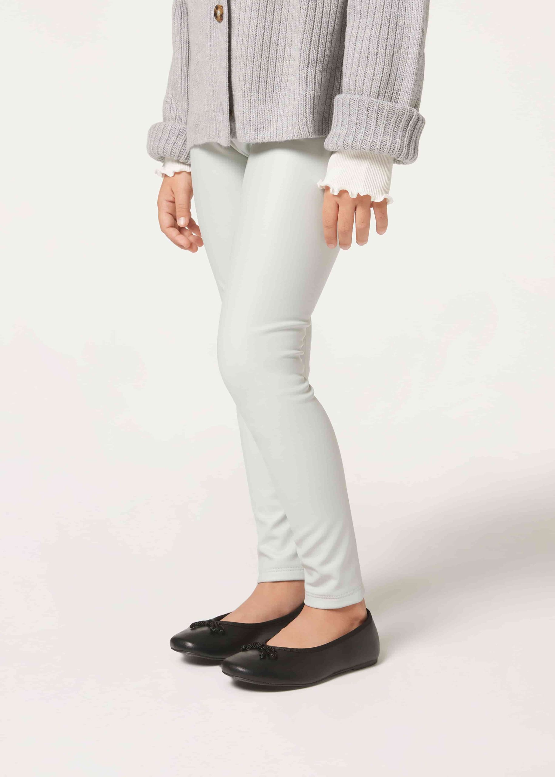 Girls’ leather effect thermal leggings. The brushed fabric inside gives it a warm, pleasant feel against the skin, recommended for the colder months. Comfortable waistband for the perfect fit.