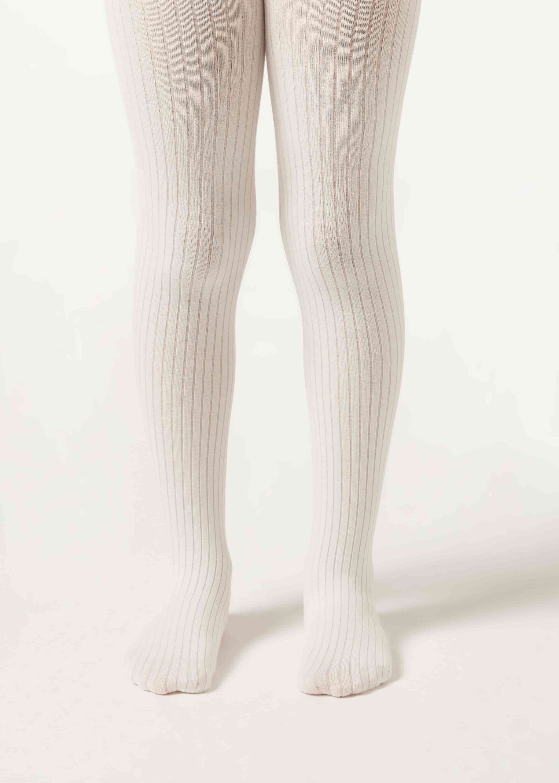 Girls’ soft cotton tights with narrow ribbing.