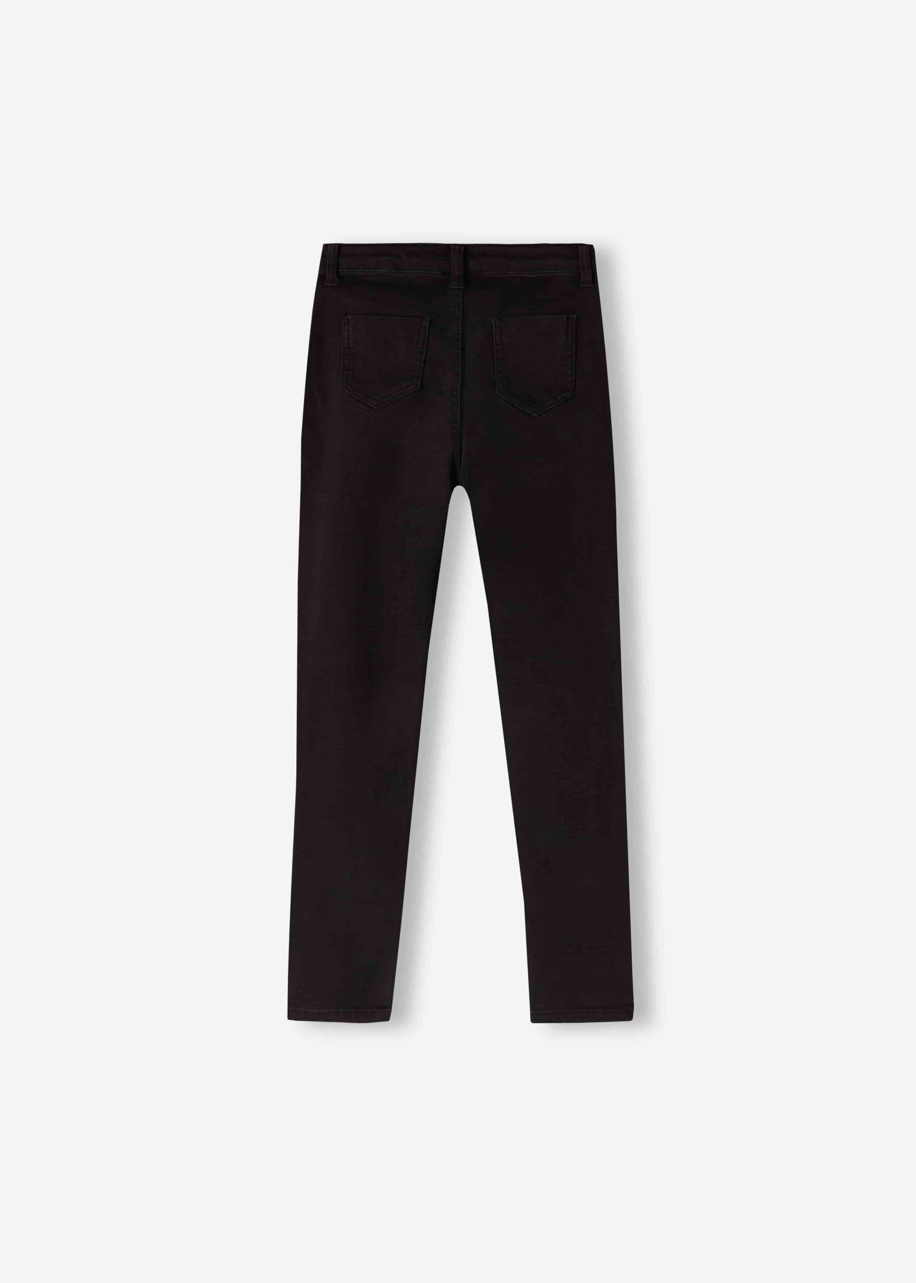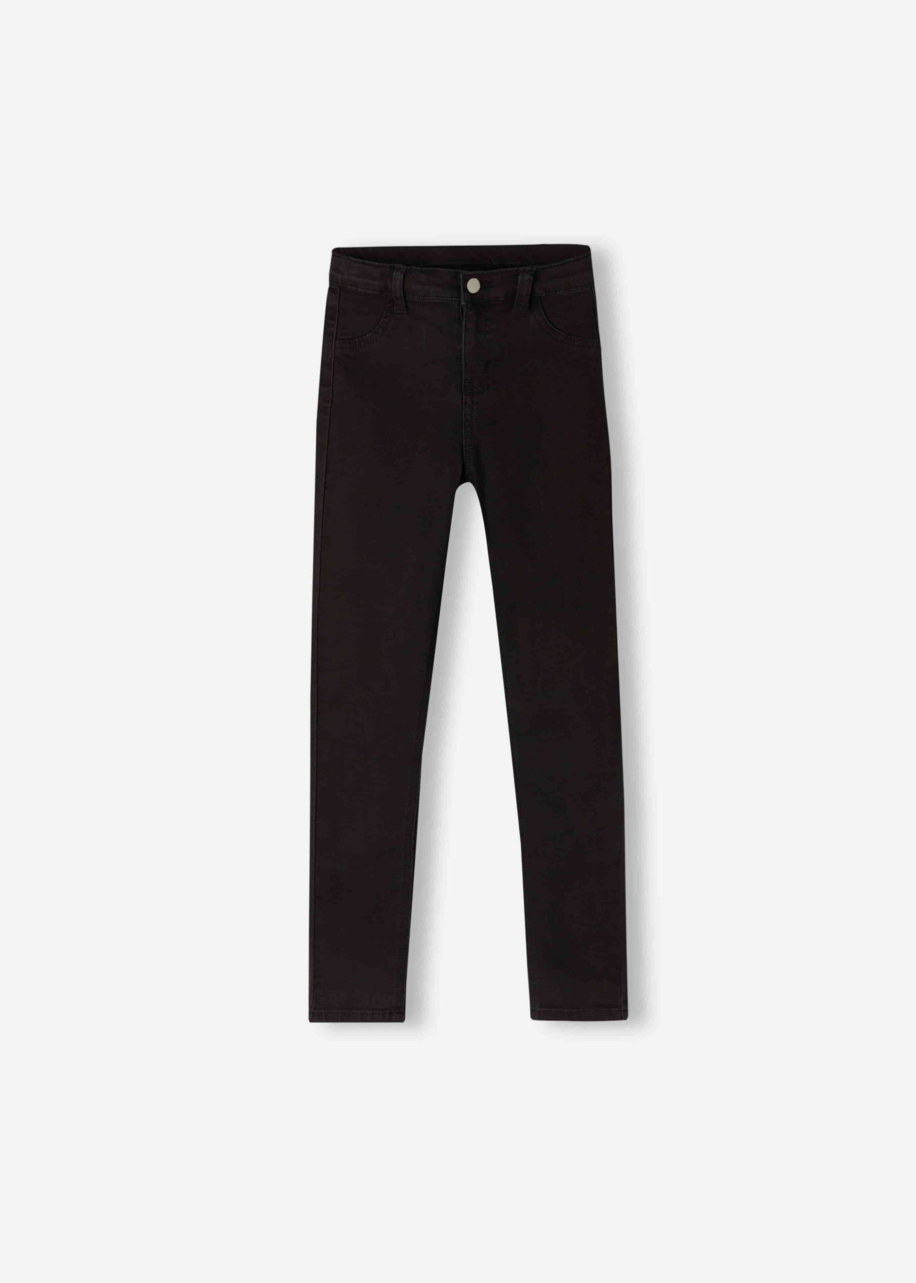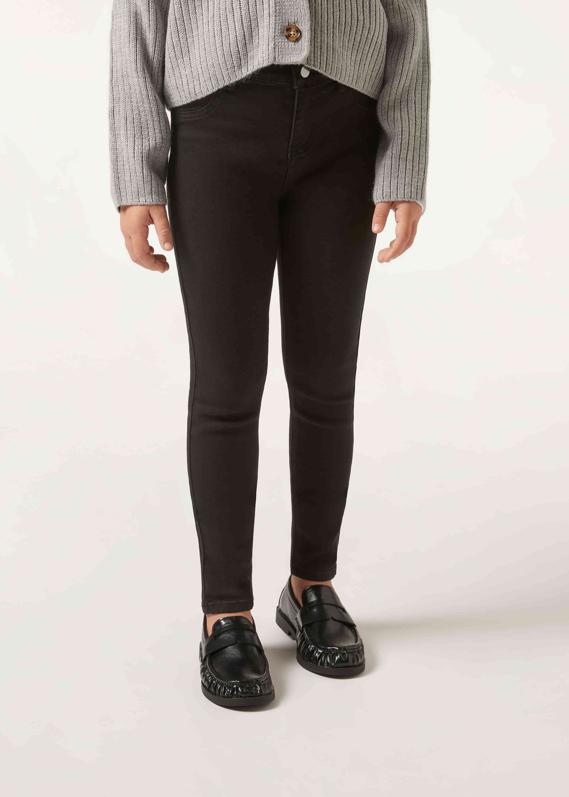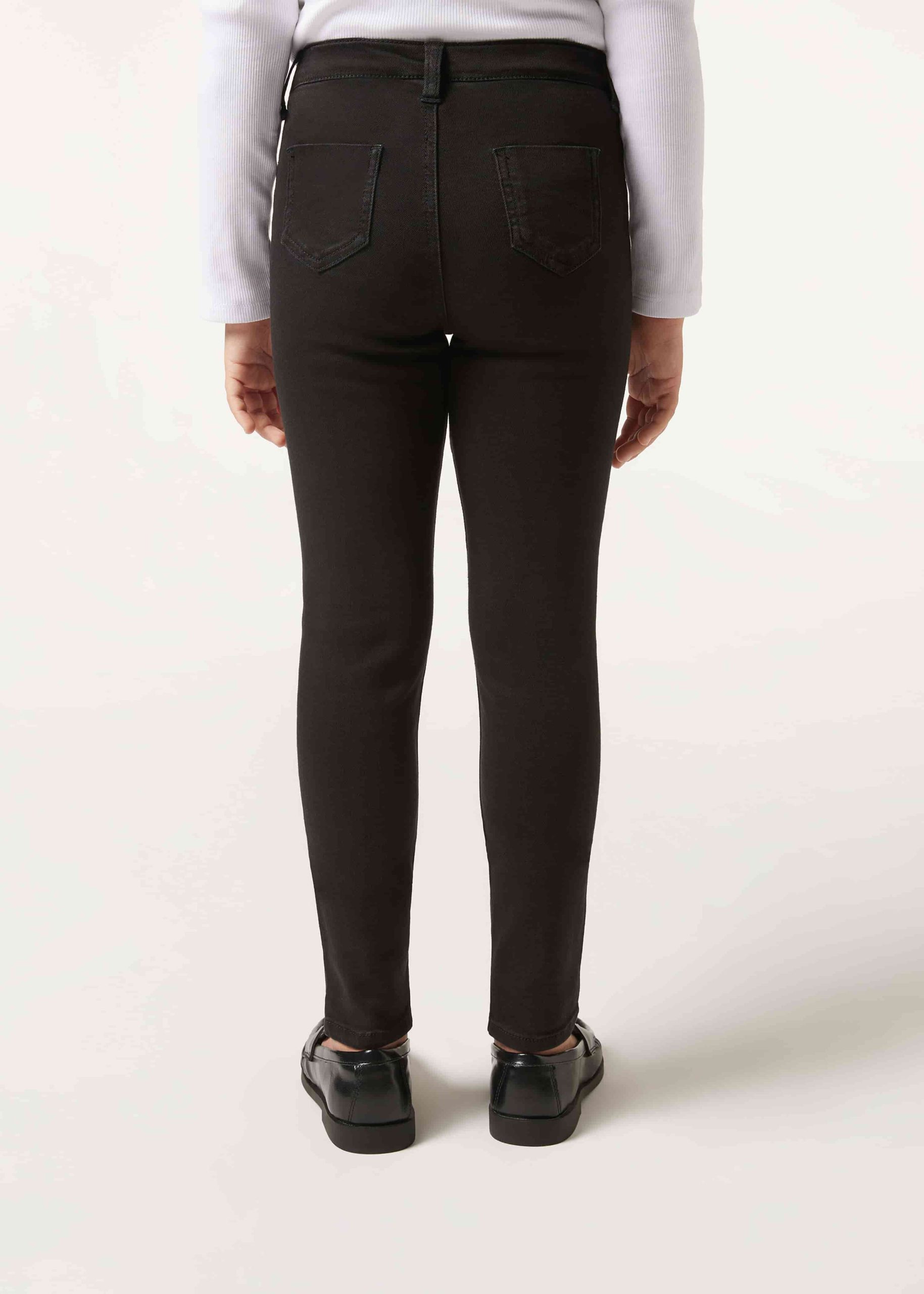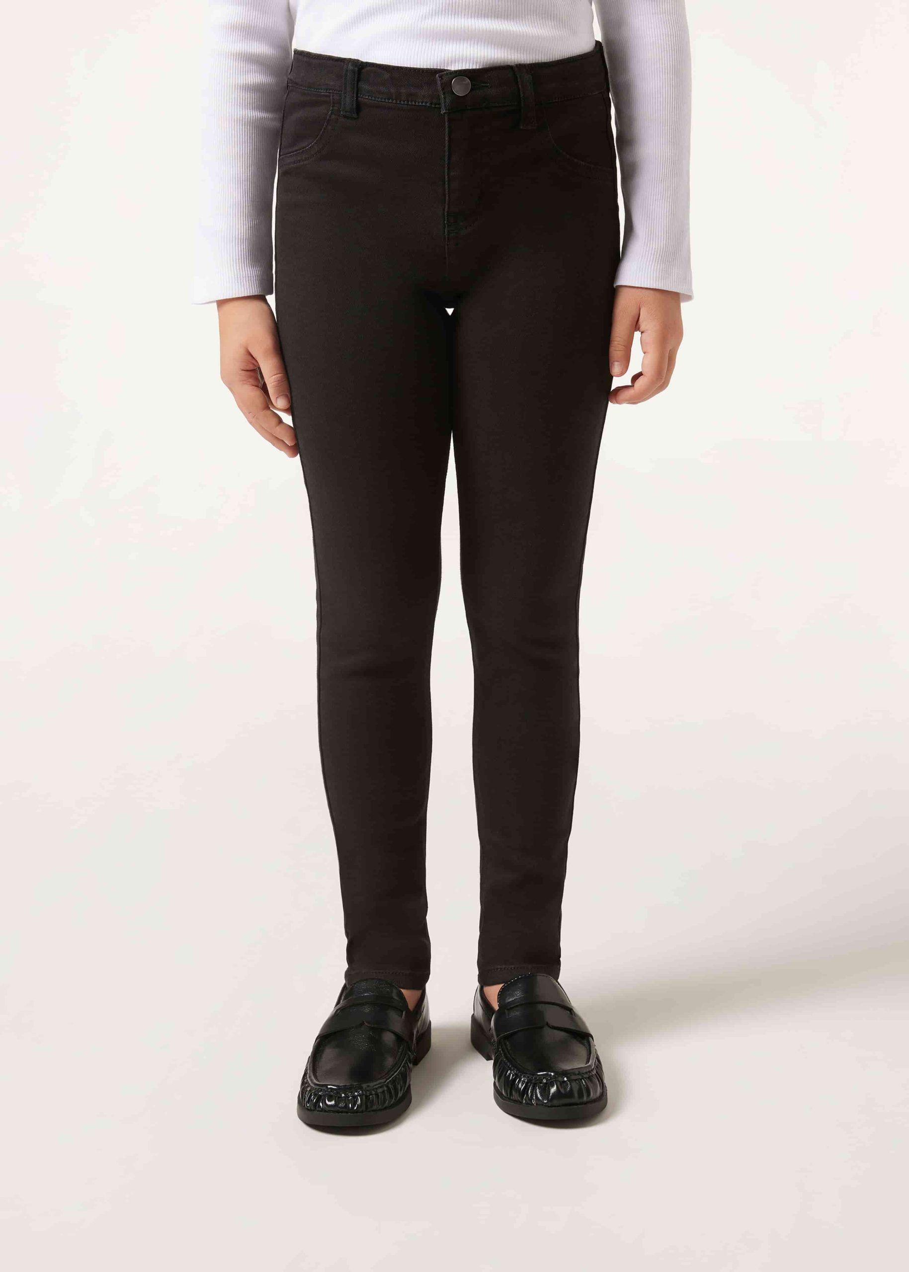 Girls’ skinny leggings in super-soft stretch denim with zip and button. Functional adjustable inner elastic at the waist. Faux front pockets and real back pockets.