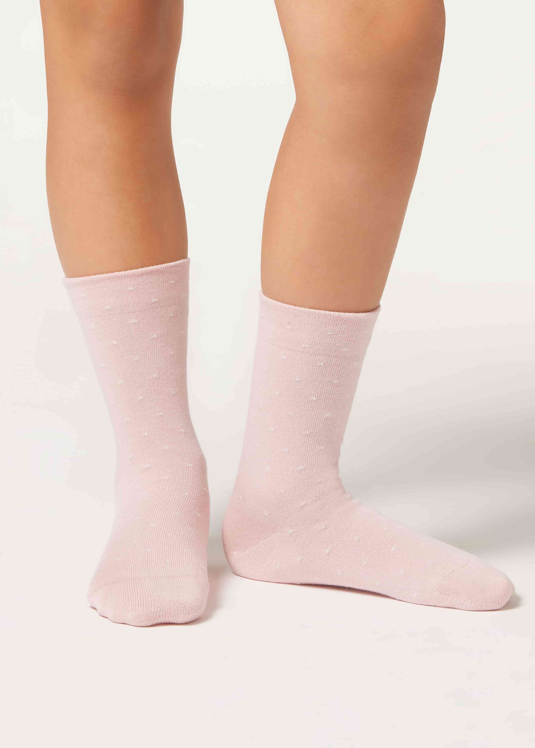 Kids’ short cotton polka dot socks with sparkly glitter, perfect for adding a touch of cheerfulness and imagination to little ones’ feet.