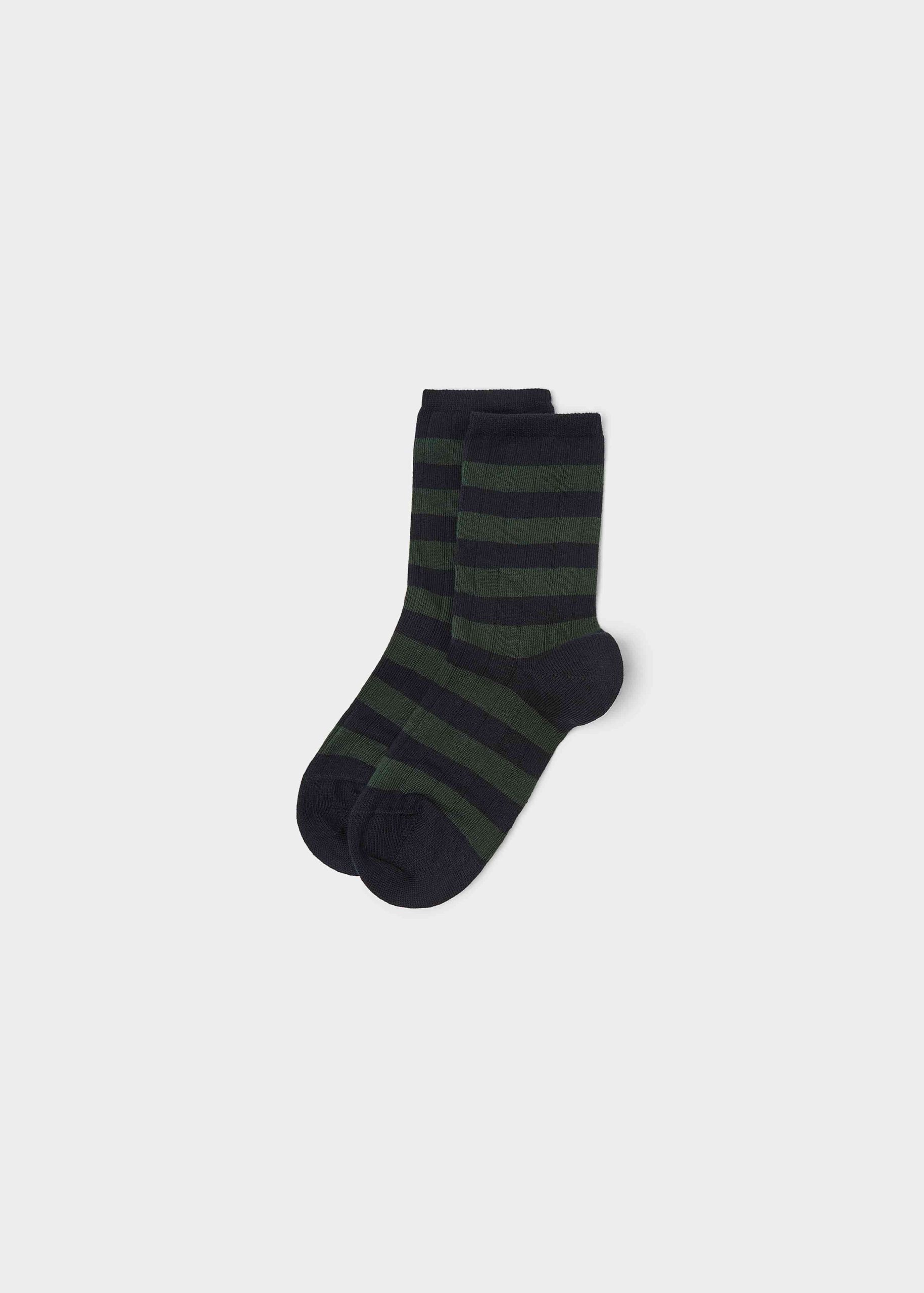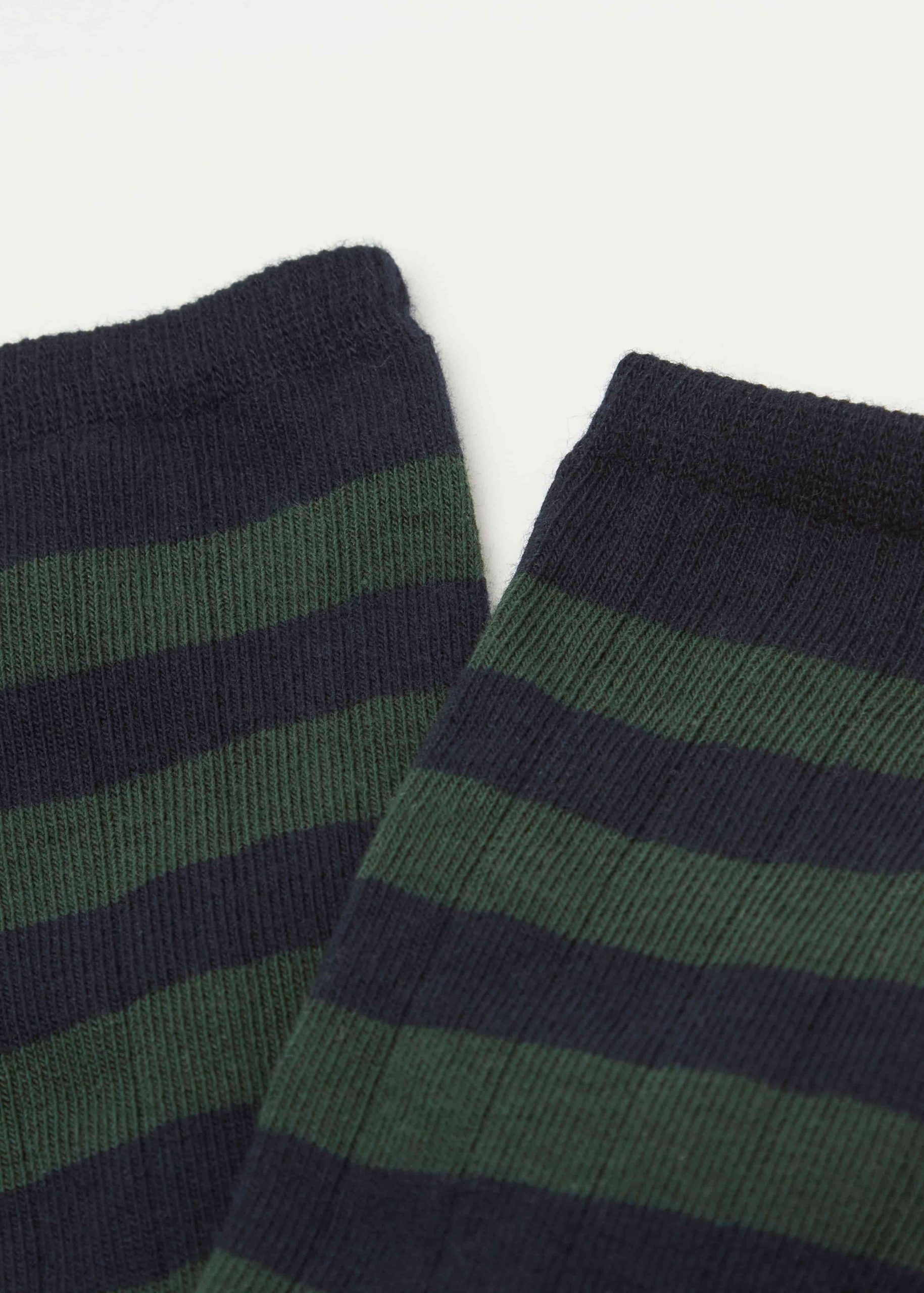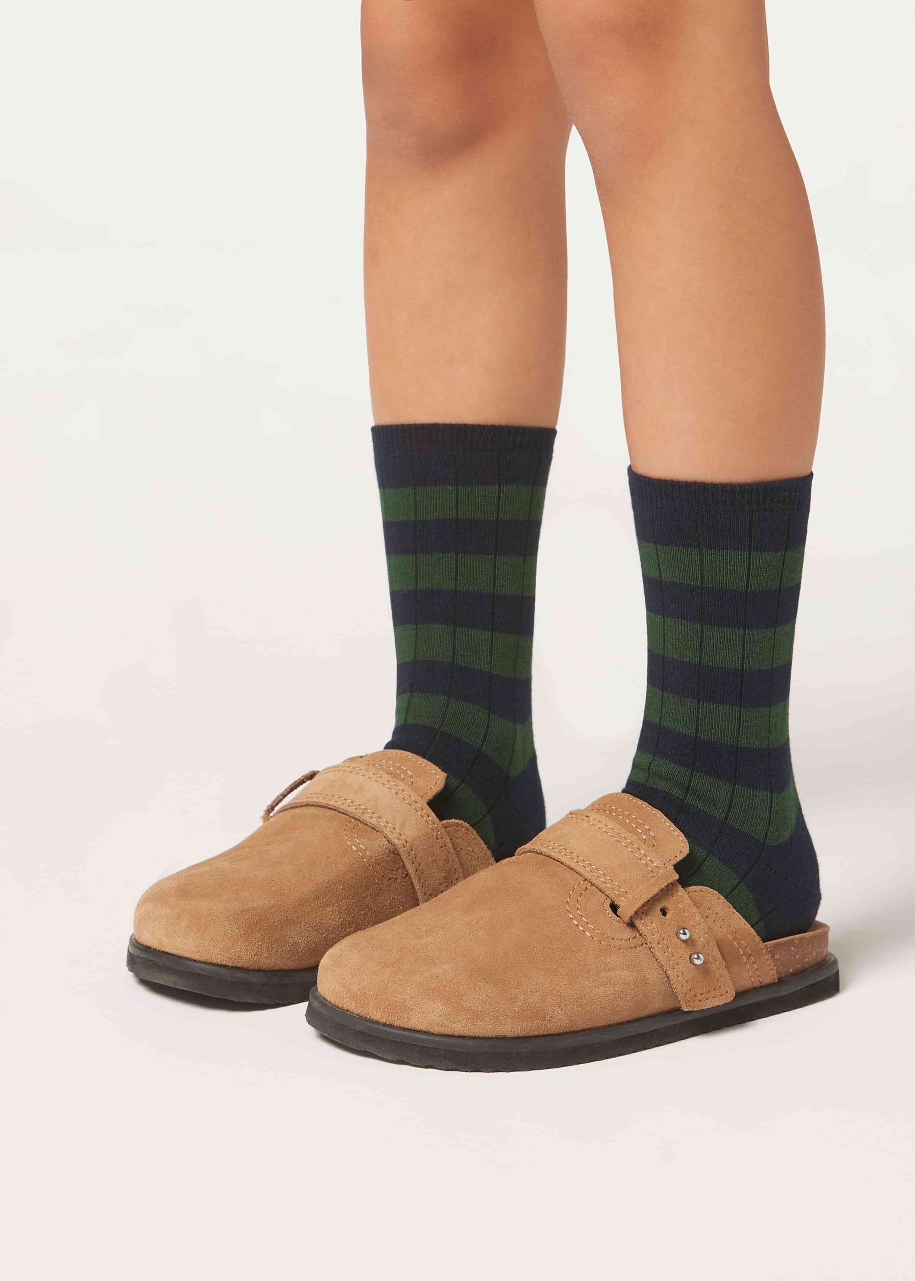 Kids’ short ribbed socks with striped pattern, perfect for a vibrant and dynamic style. Made from soft materials for comfort and optimal fit.