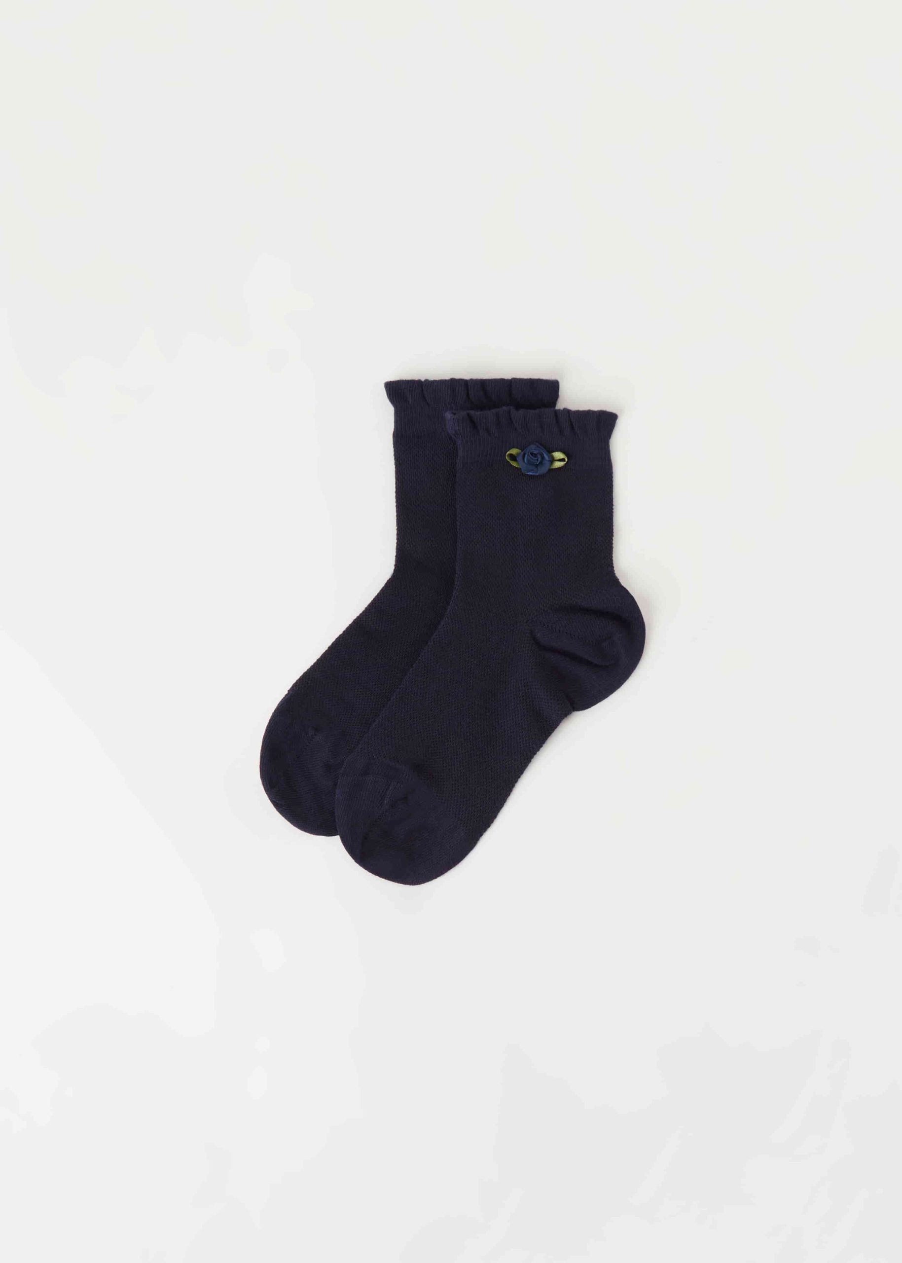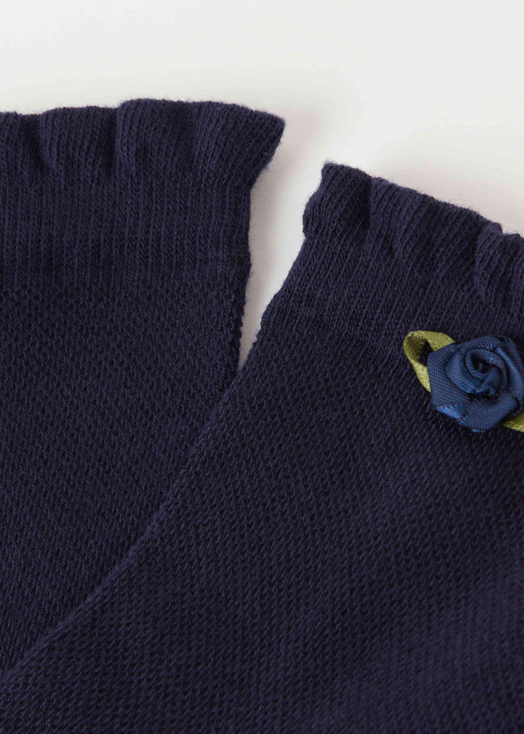 Kids’ short socks in soft micro-rib cotton with a pretty satin rose appliqué on the side. This detail adds a touch of elegance and sweetness, making these socks perfect for completing every outfit with style and comfort.
