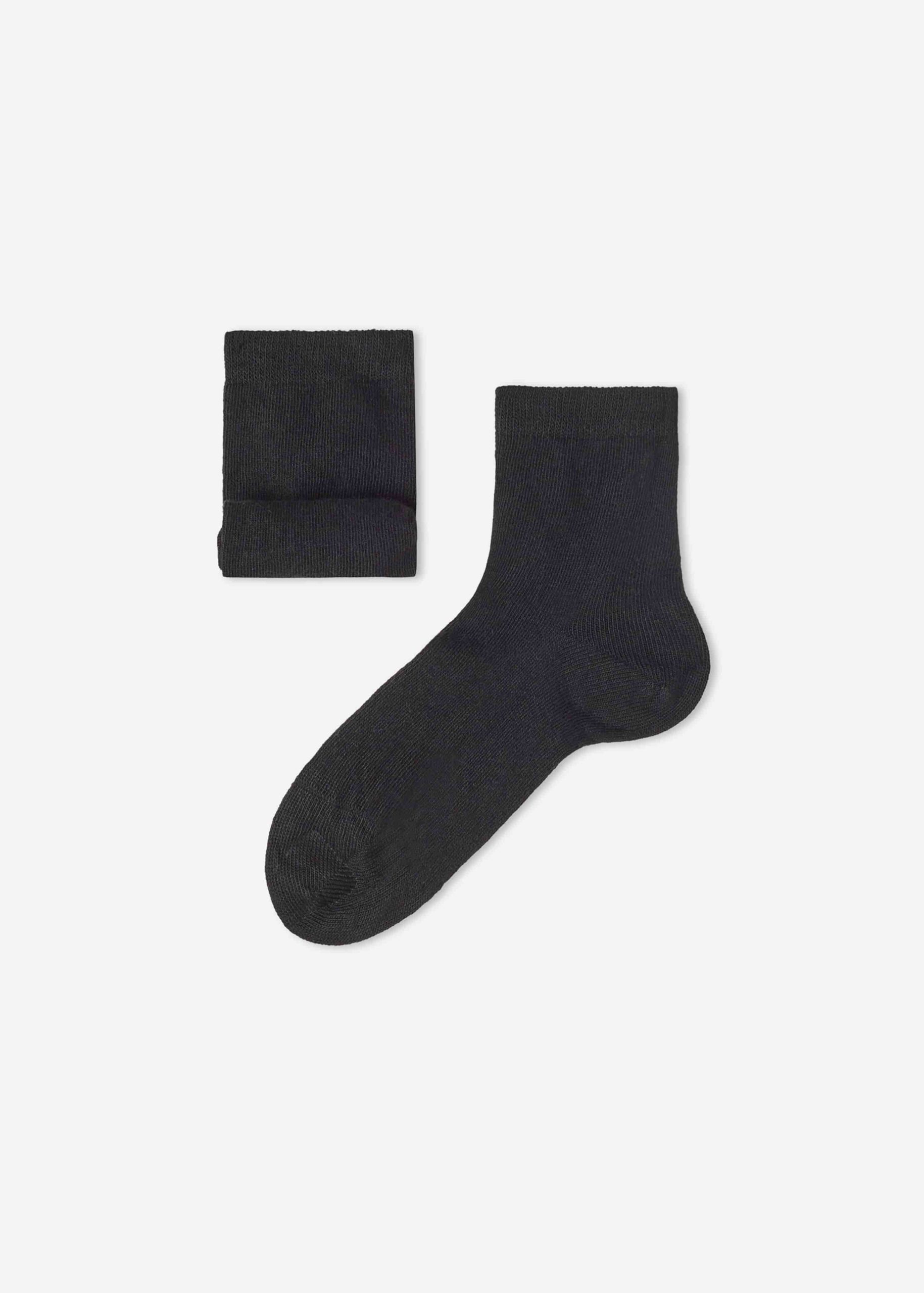 Kids’ smooth cashmere short socks with a low trim at the ankle.