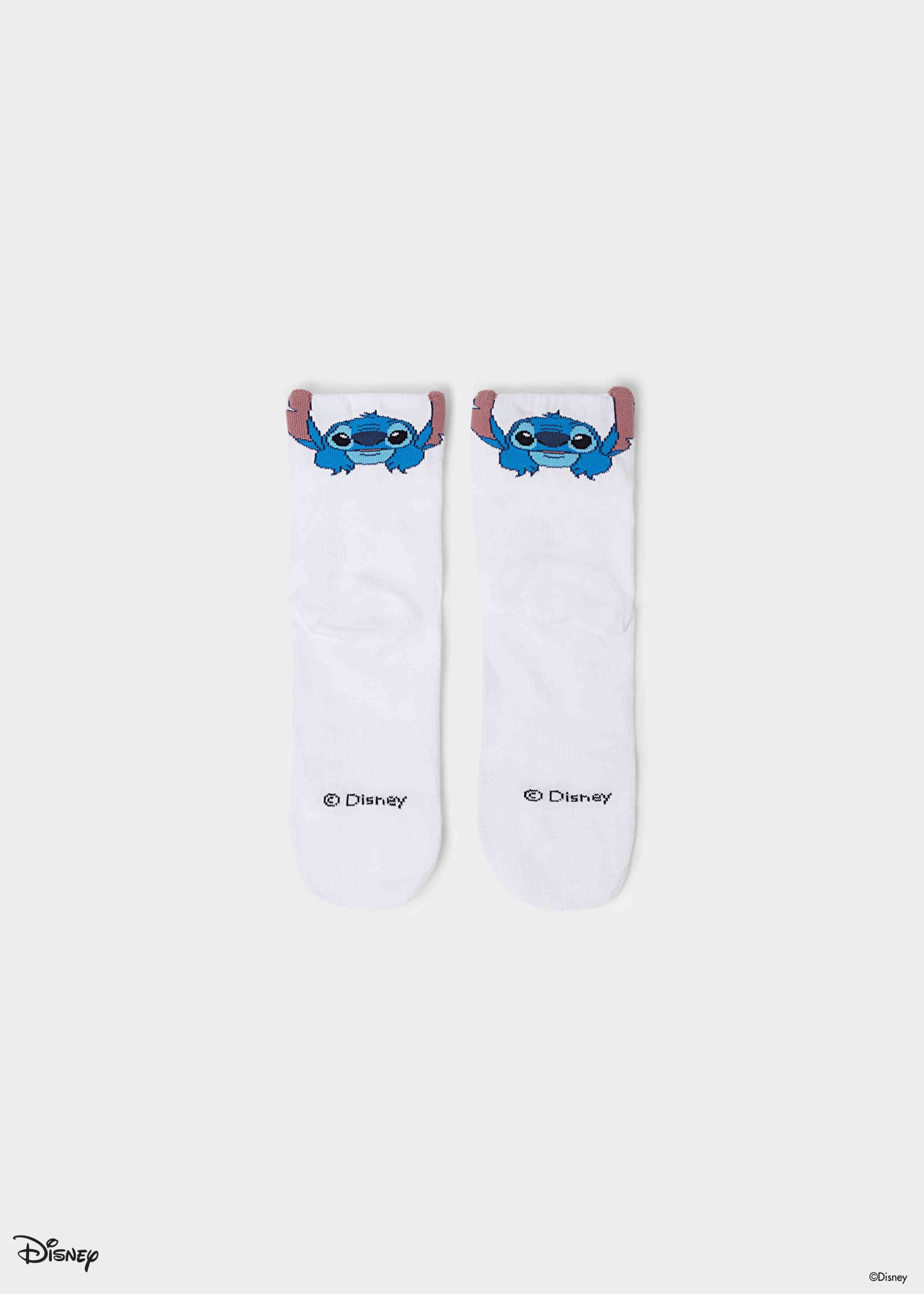 Kids’ short socks in soft cotton, created in collaboration with Disney and inspired by the adorable character Stitch. These socks offer a playful and vibrant style, perfect for little fans of Stitch and Disney’s adventures. Made from soft materials for comfort and resistance, they are ideal for adding a touch of cheerfulness and imagination to a child’s everyday wardrobe.