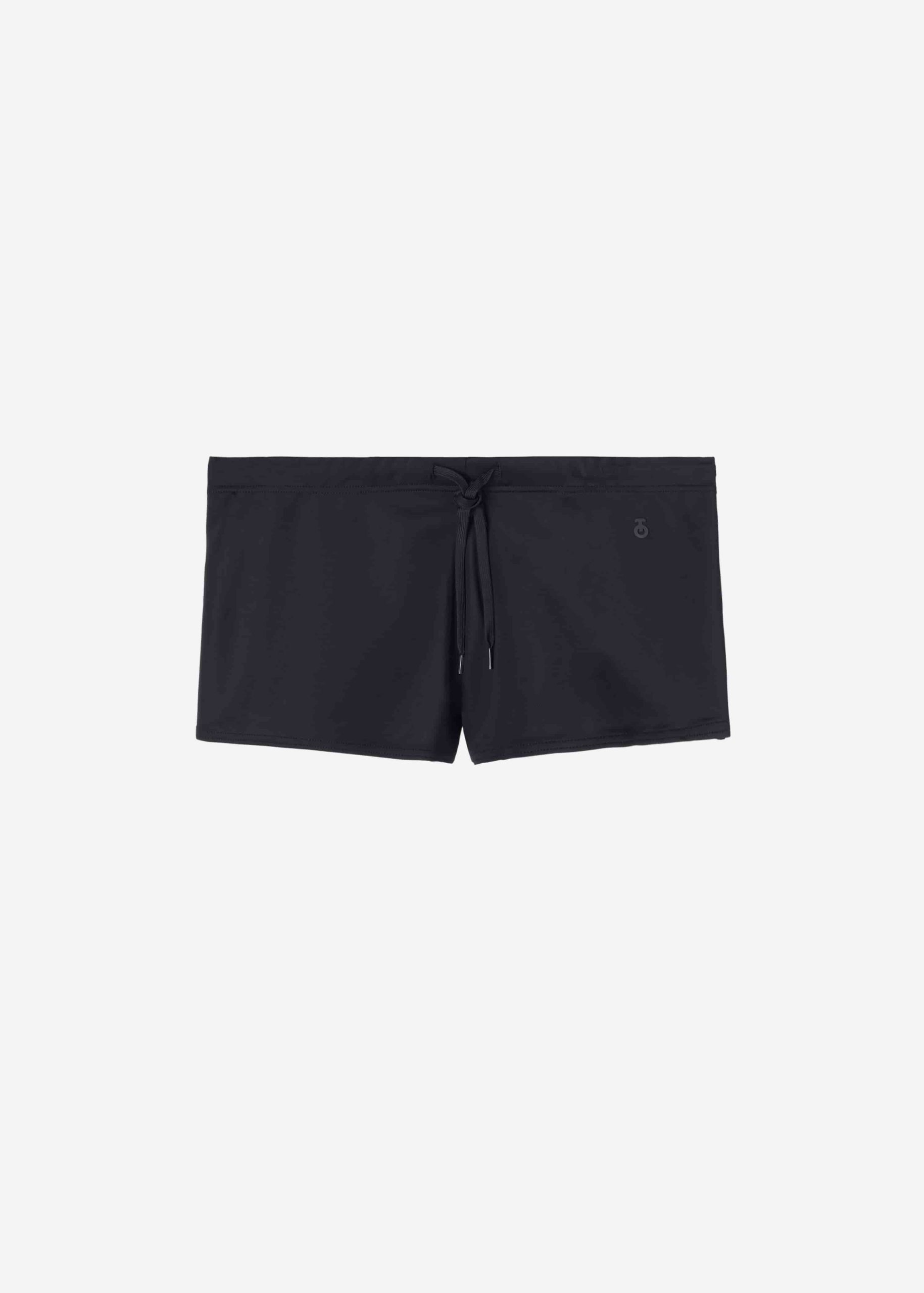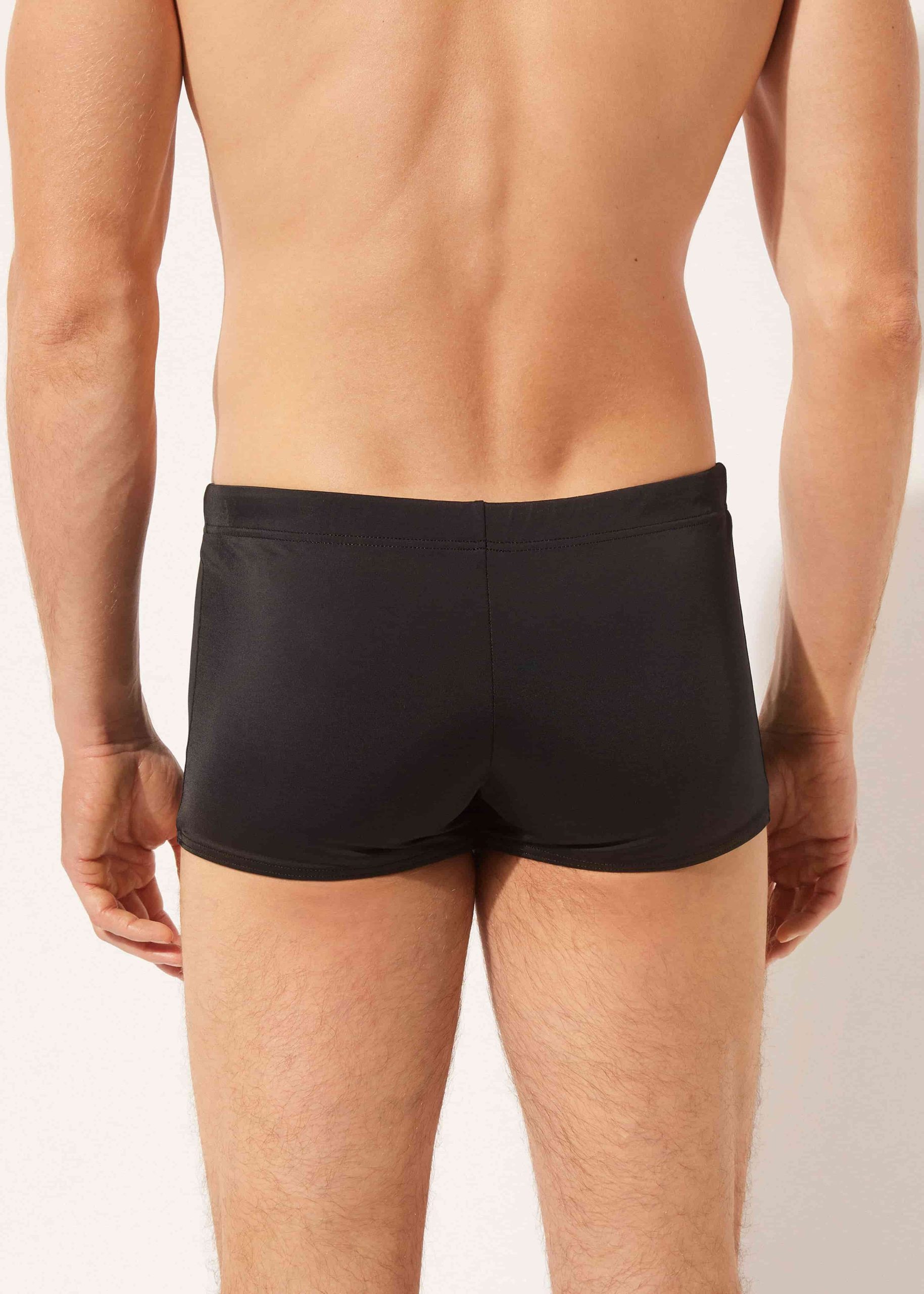 Men’s microfibre boxer-style swimming trunks with raised sides and good rear coverage. Hidden elastic waistband and external drawstring for size adjustment. Lined at the front.