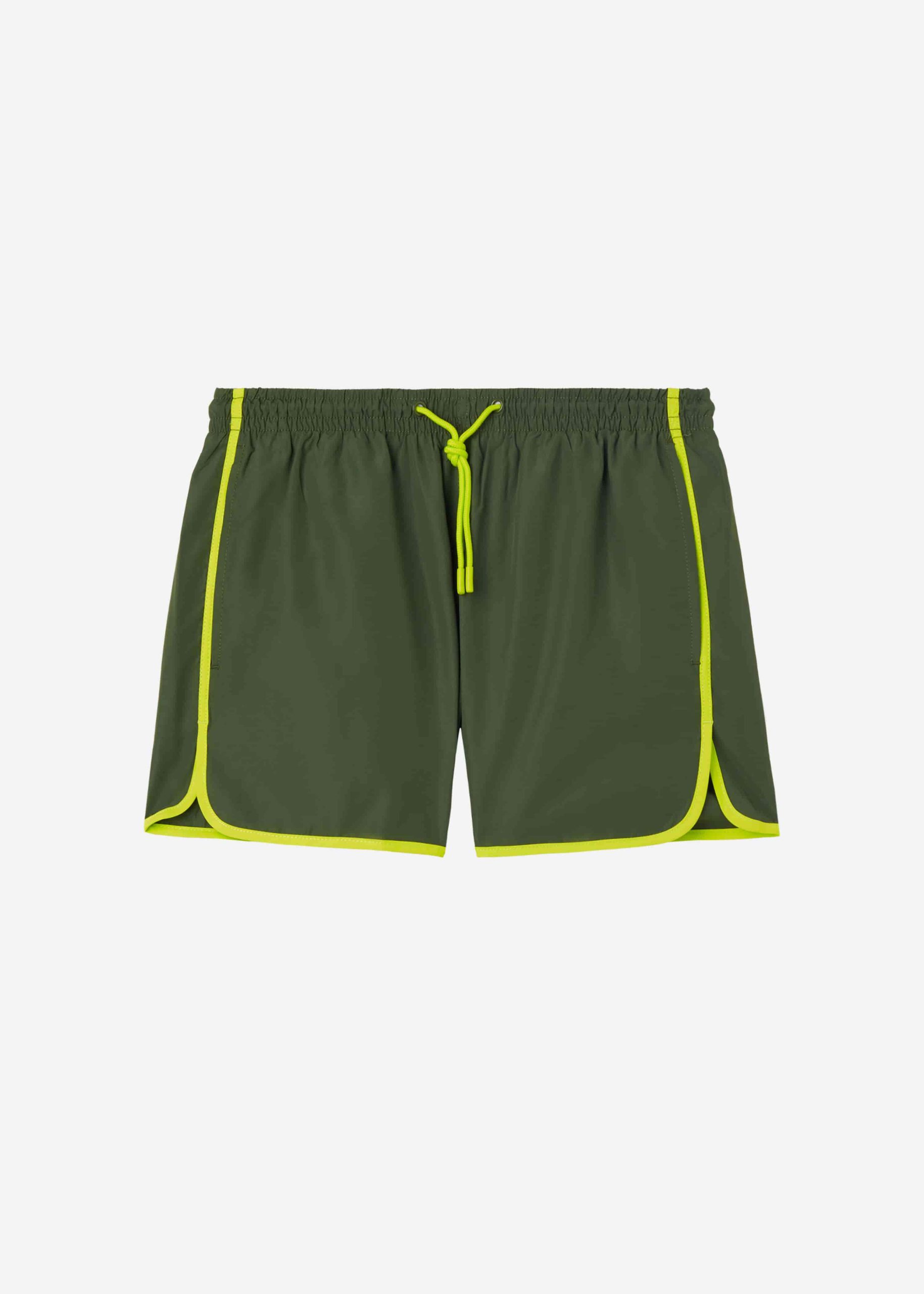 Men’s boxer swim shorts with contrasting-colour trim on the sides. Coloured drawcord and elasticated waist. Side pockets with inner mesh and rear pocket with 3D logo. The style is inspired by sport and running wear. Soft and comfortable quick-dry fabric.