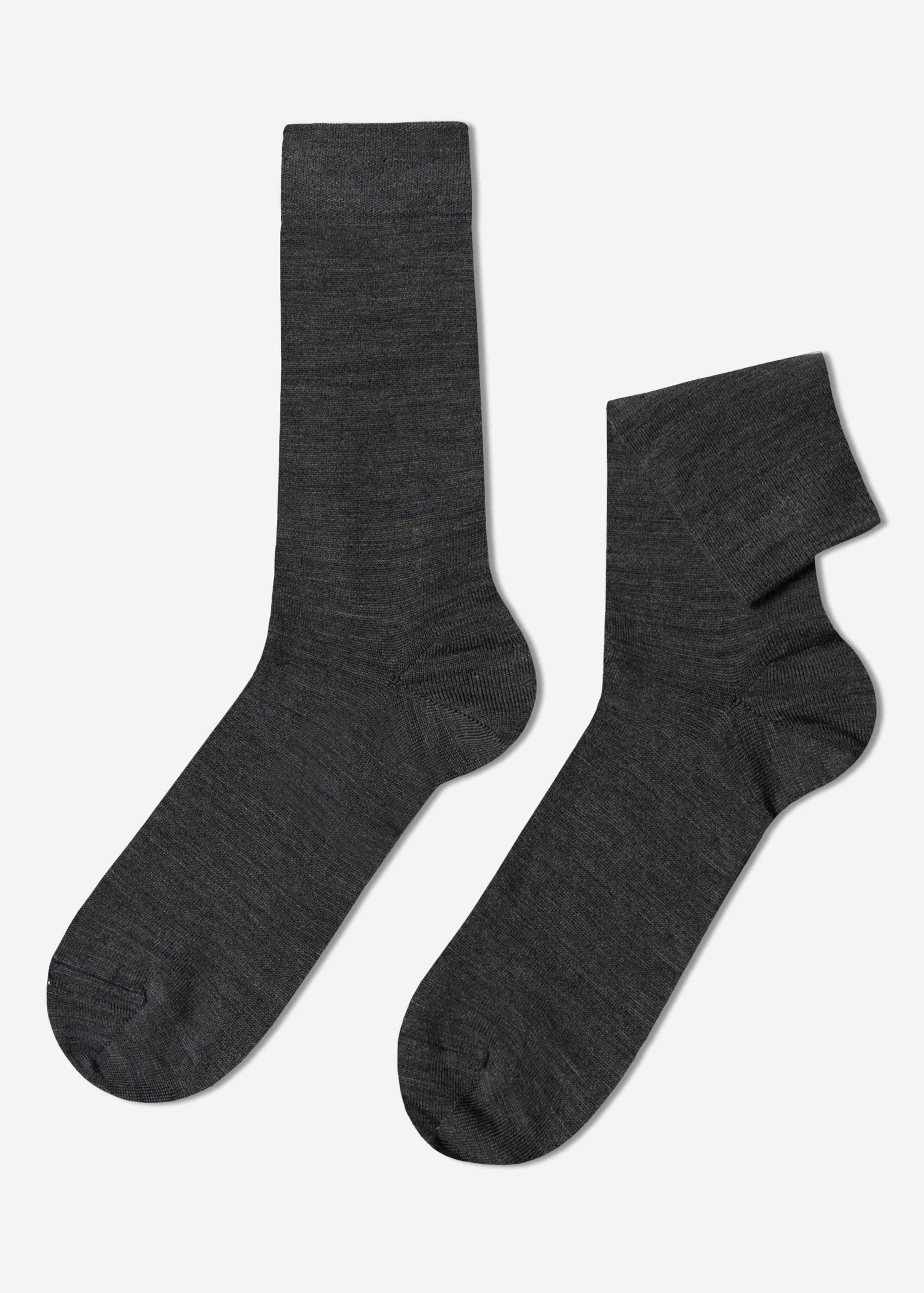 Men’s short socks with a wool exterior and a soft, cotton interior against the skin.