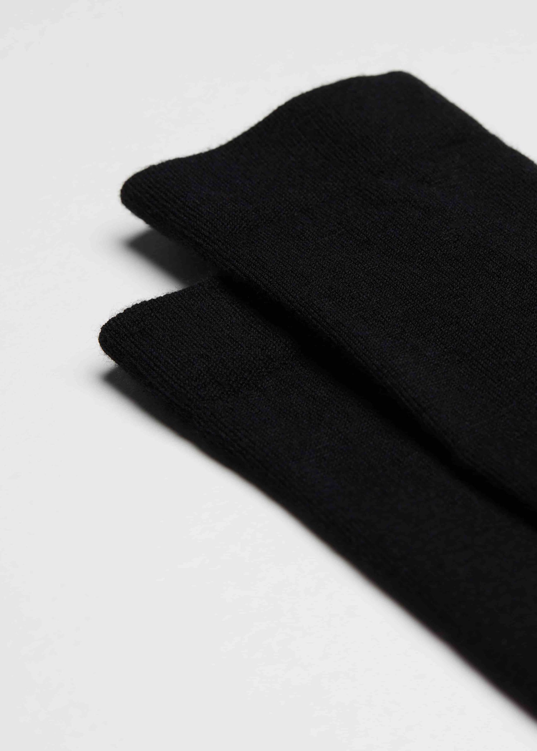 Men’s long socks with a wool exterior and a soft, cotton interior against the skin.