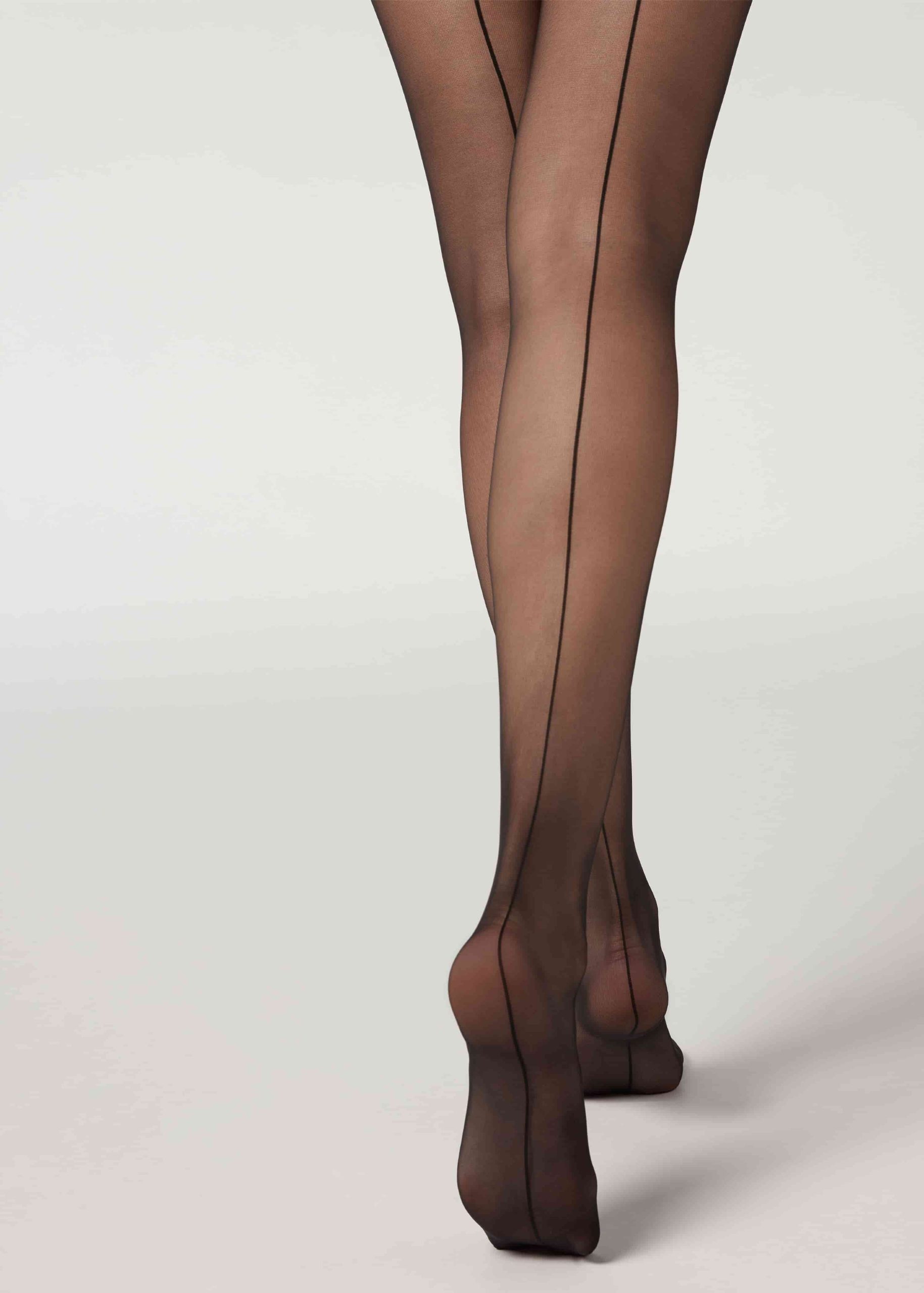 20 denier sheer matt tights with a back seam and flat seams. Cotton gusset and invisible toes. Perfect for the most elegant occasions.