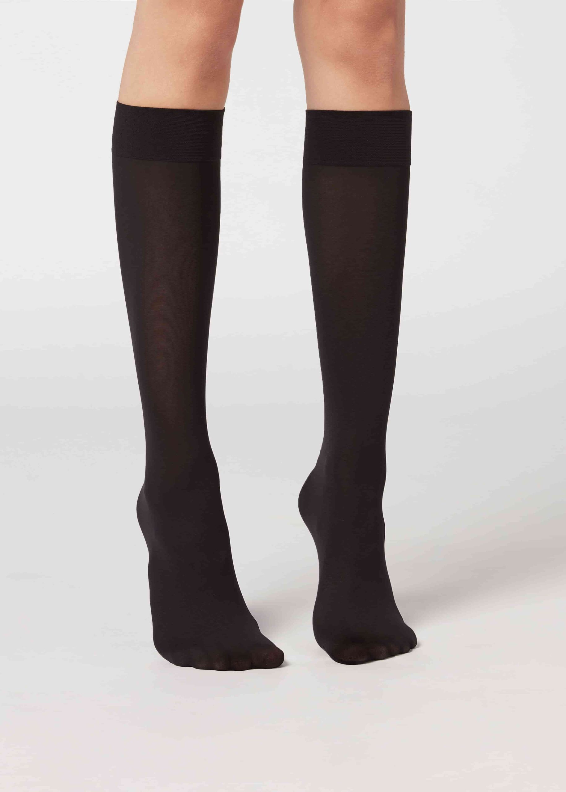 30 denier semi opaque knee-highs socks with comfort cuffs and invisible toes.