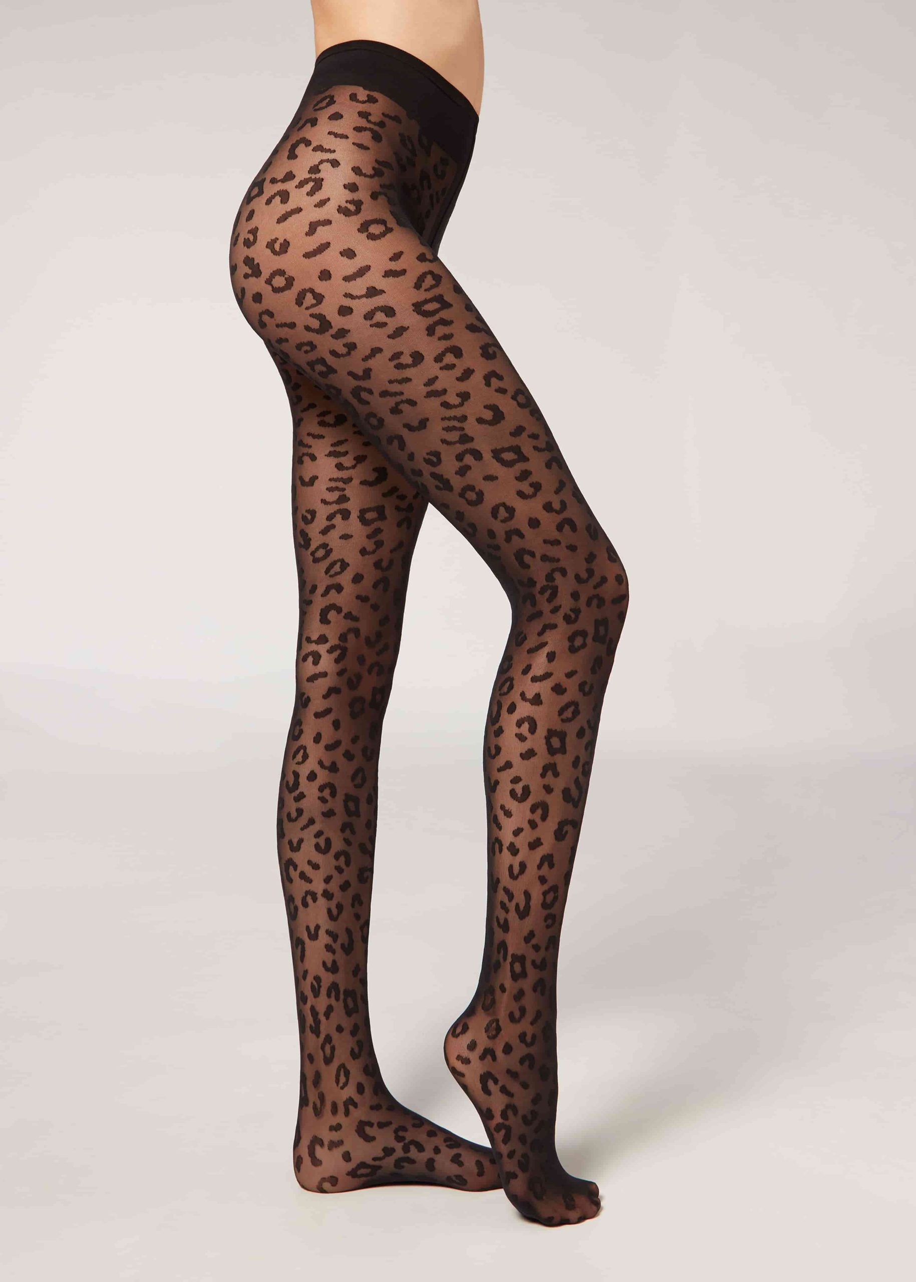 30 denier sheer tights with tone-on-tone animal pattern. Cotton gusset.