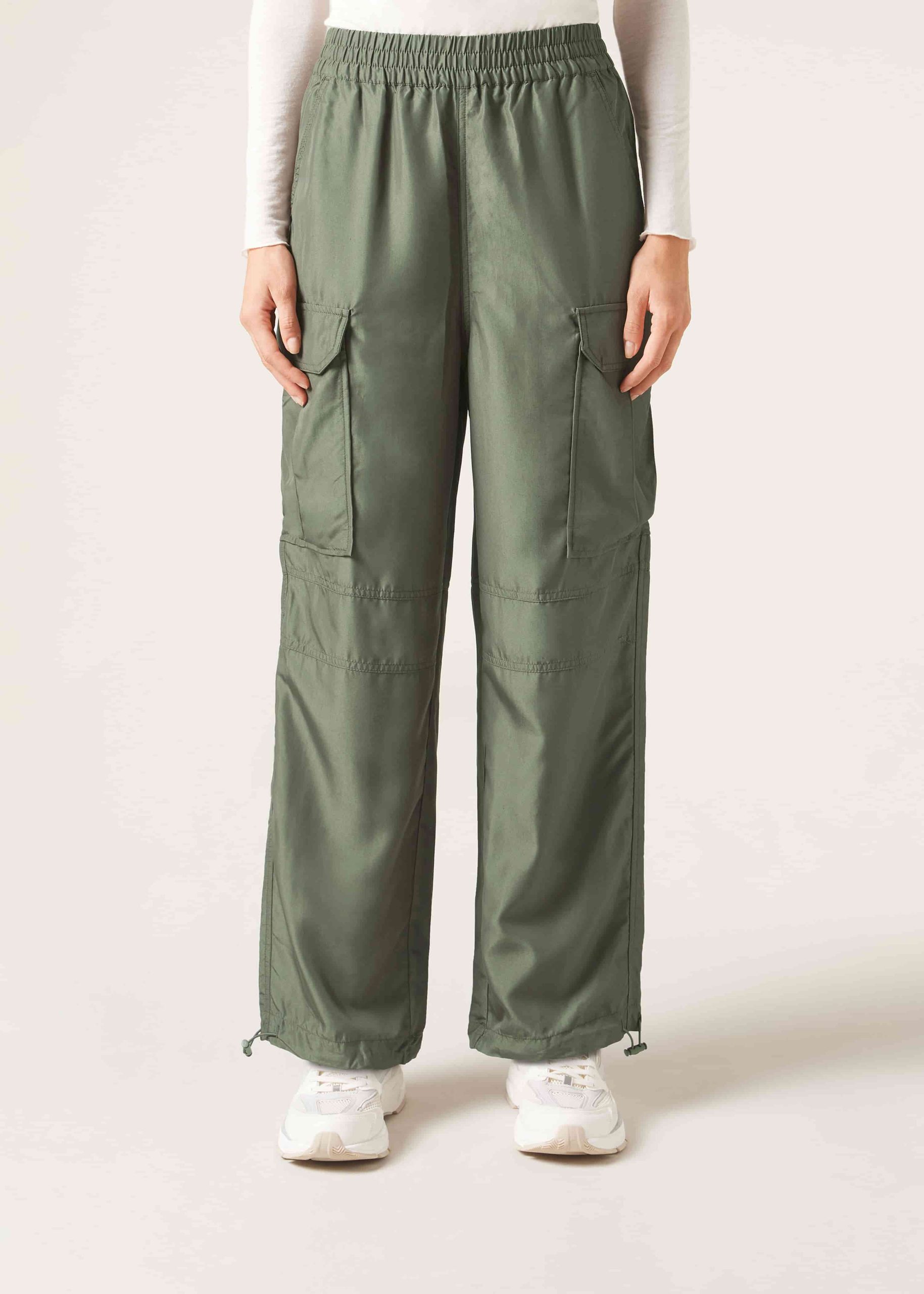 Women’s cargo trousers in ultra-fine modal fabric for extreme comfort. Large side pockets and side slant pockets. With a soft elastic waistband and adjustable drawstring at the ankles, these women’s trousers with side pockets offer practicality and style.