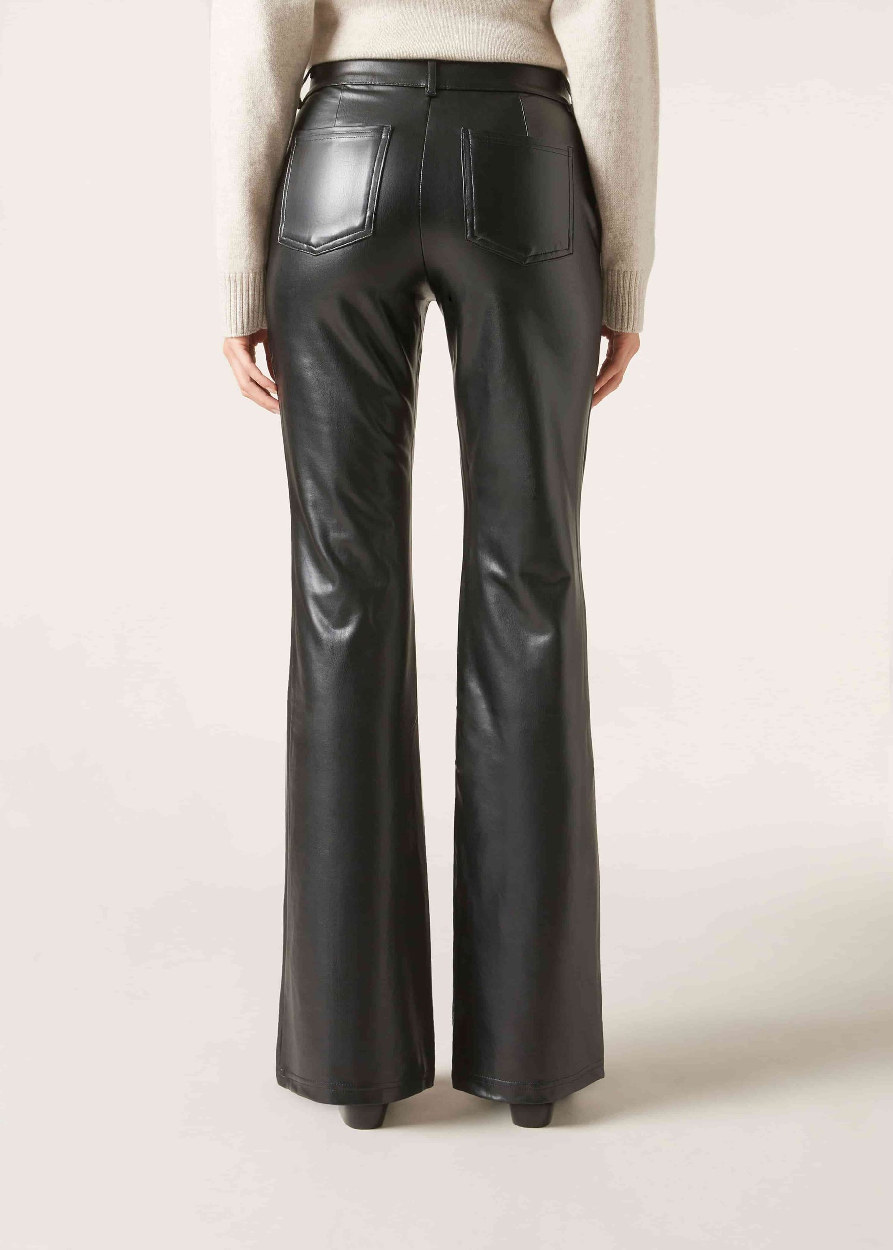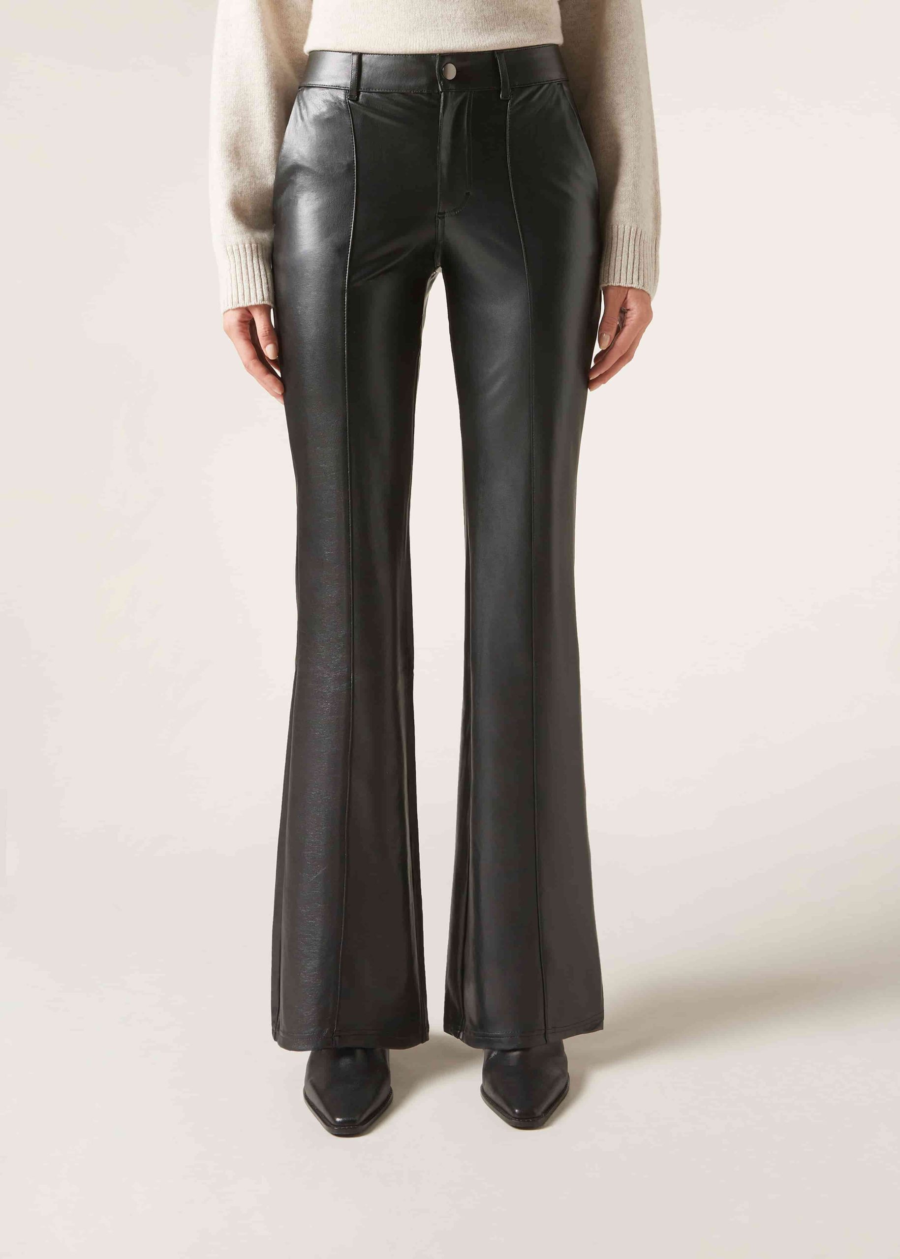 Women’s must-have flared trousers in coated-effect fabric. With belt loops at the waist and practical front and back pockets, they combine style and functionality. The raised central seam adds a touch of originality.