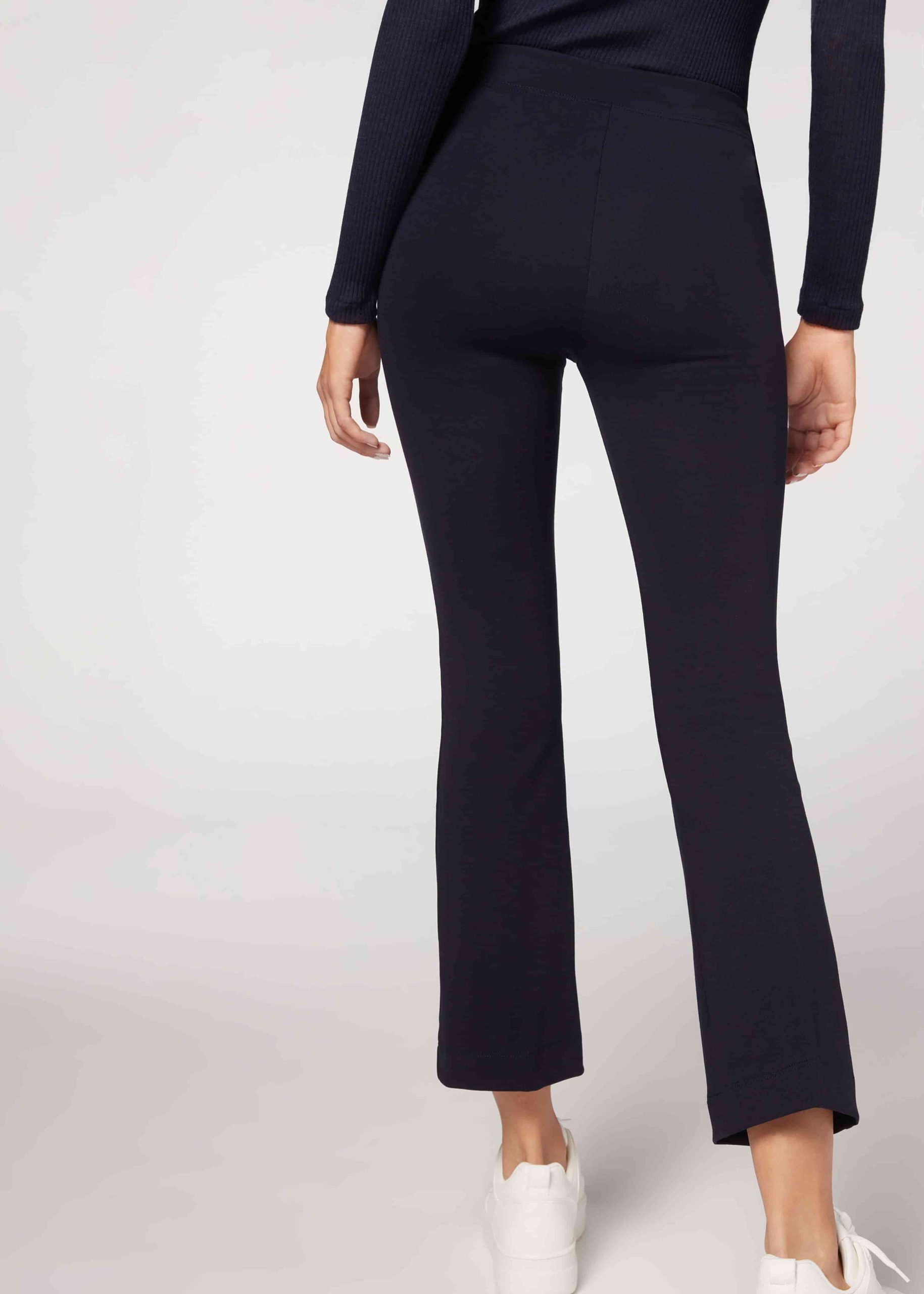 Women’s cropped flared stretch leggings, with elasticated belt.