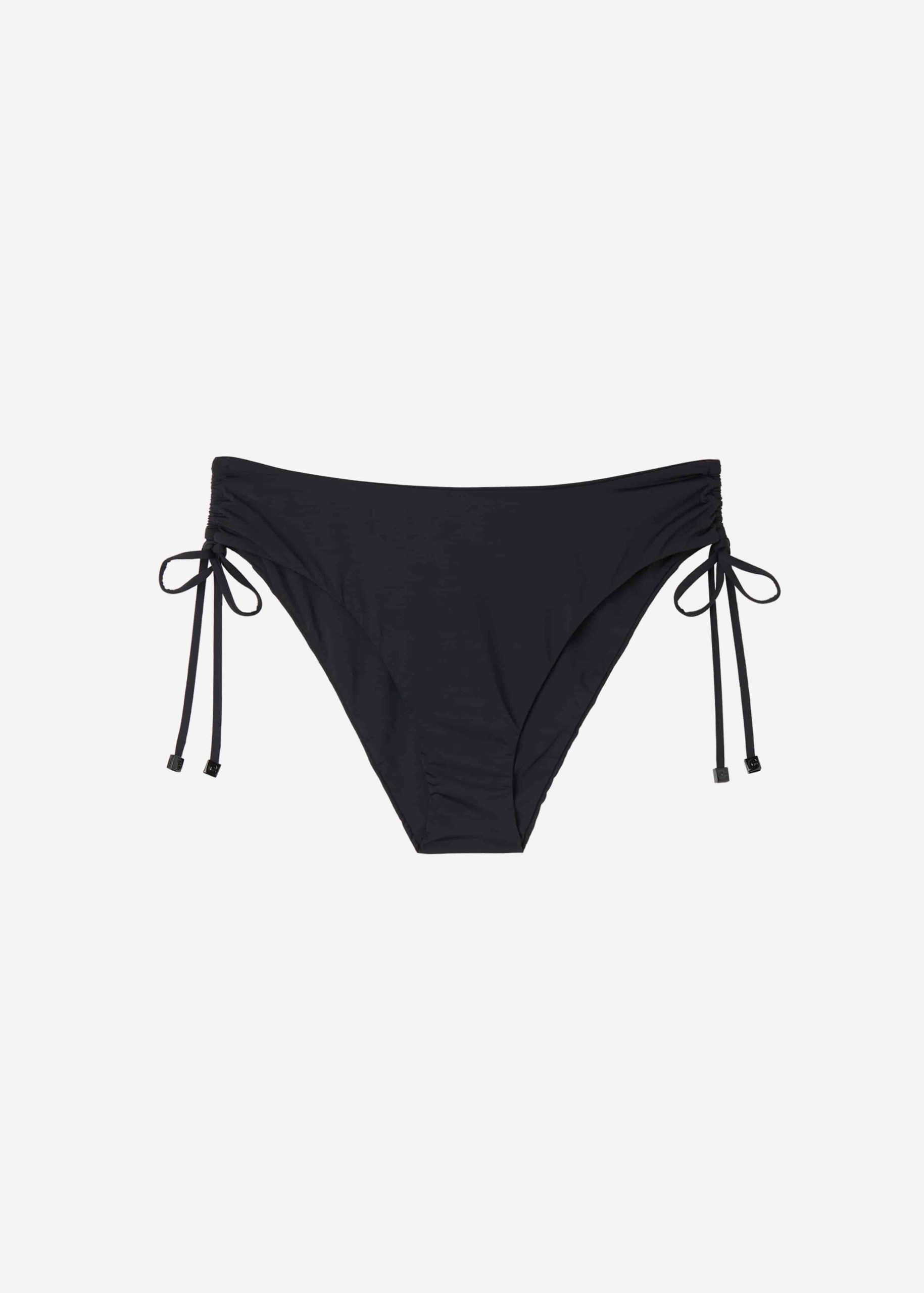 High-waisted bikini bottoms with drawstring at the hips with square ends to adjust the fit at the leg. The super-soft fabric makes it pleasant to wear and light and comfortable on the skin. Fully lined with invisible seams.