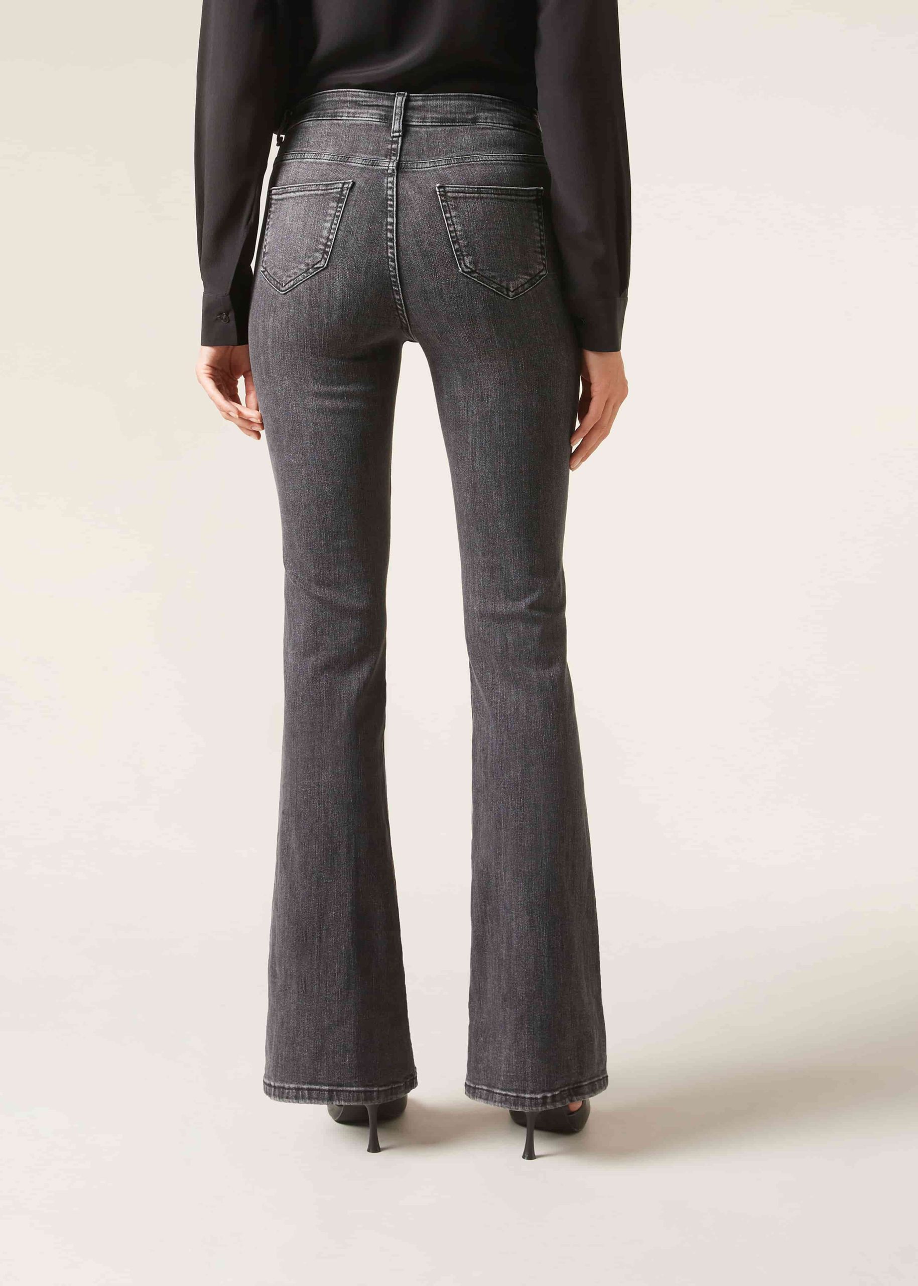 Women’s five-pocket flared jeans with belt loops at the waist, zip with button fastening and Clz branded rivets. Made from ultra-stretch denim fabric, these flared stretch jeans offer exceptional comfort and a perfect fit, ideal for those looking for style and convenience in one garment.