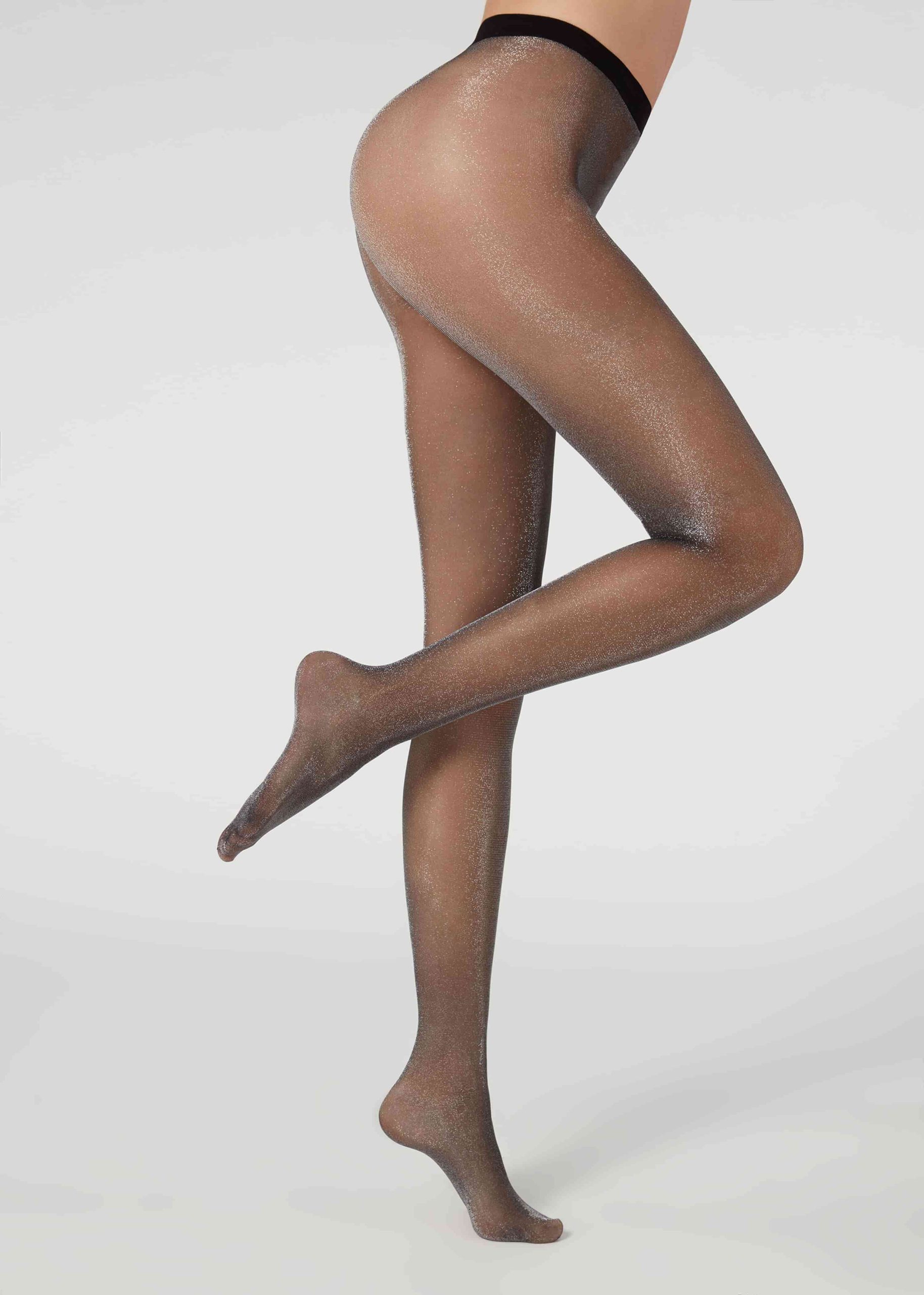 Women’s 20 denier sheer tights with cotton gusset and shiny glitter thread.