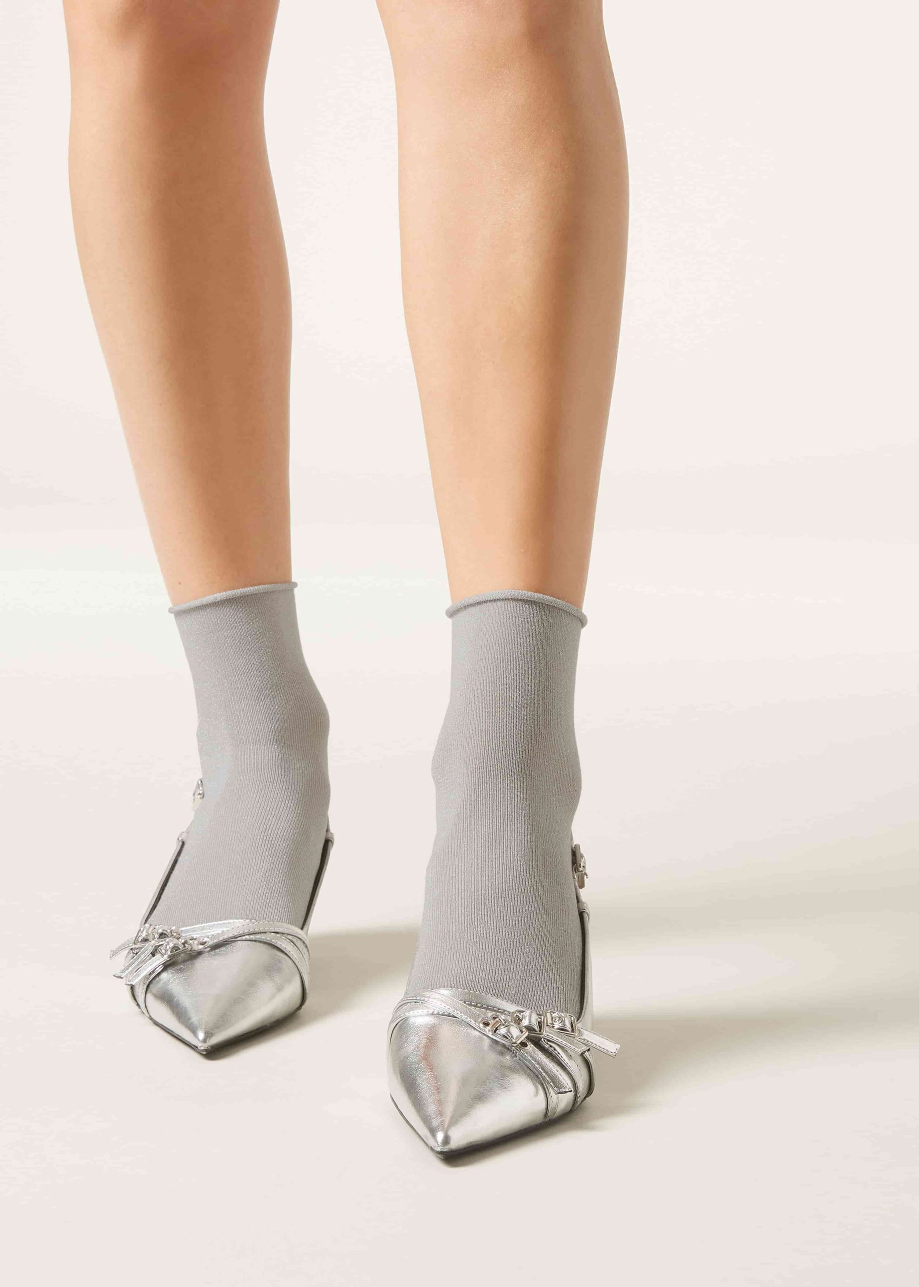 Women’s short socks with glitter finish and comfort edge, for a cosy touch of sparkle.