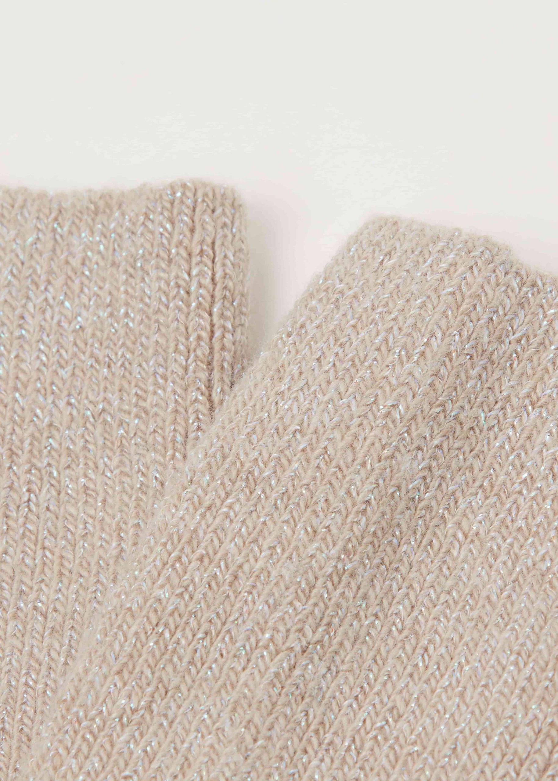 Women’s short socks with cashmere and ribbing for enveloping comfort, embellished with iridescent glitter for a touch of elegance. Mid-calf length, for a refined, modern look.