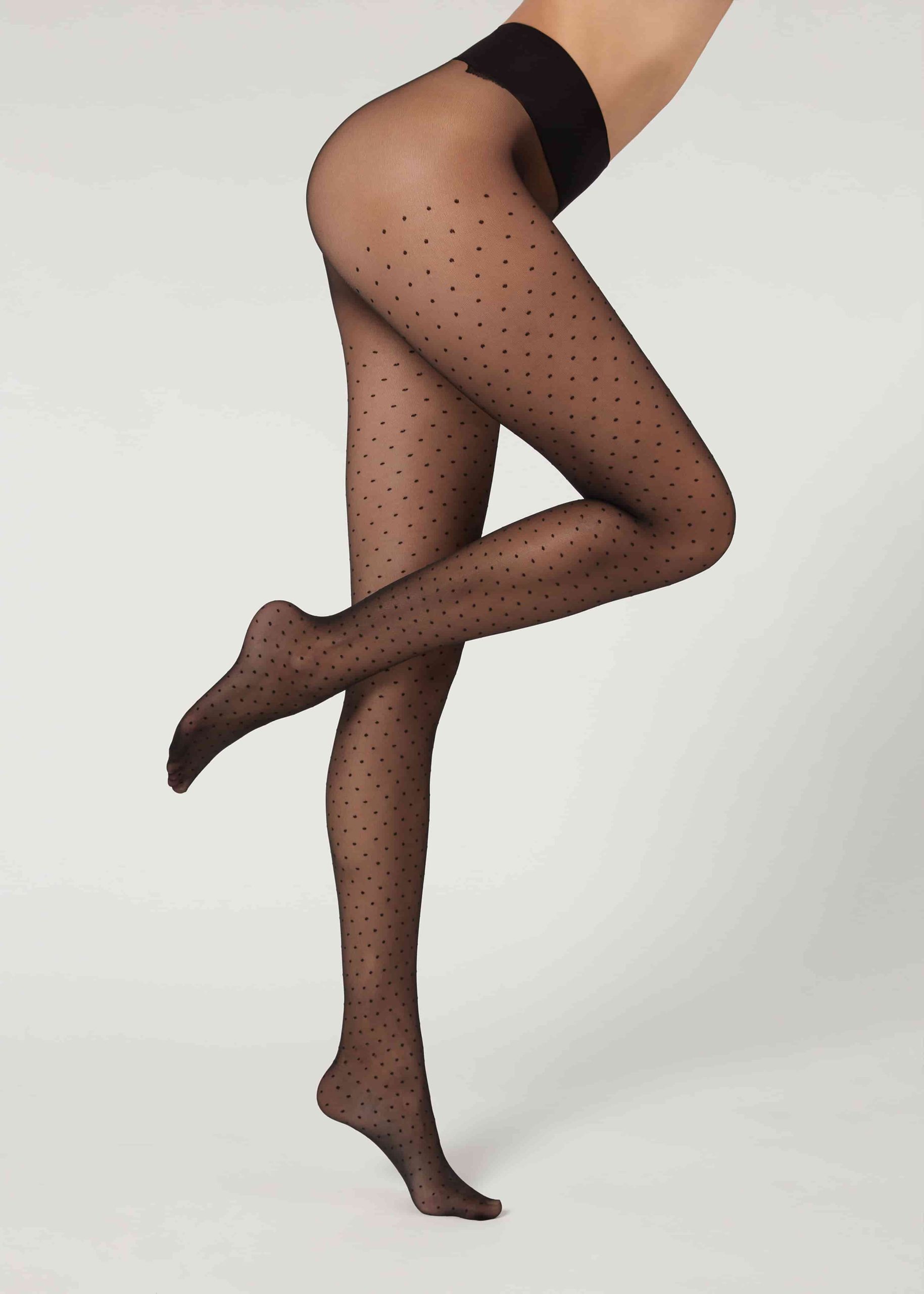 Extra-comfy 20 denier seamless sheer tights with a polka dot pattern. Totally invisible, even under tight clothes.