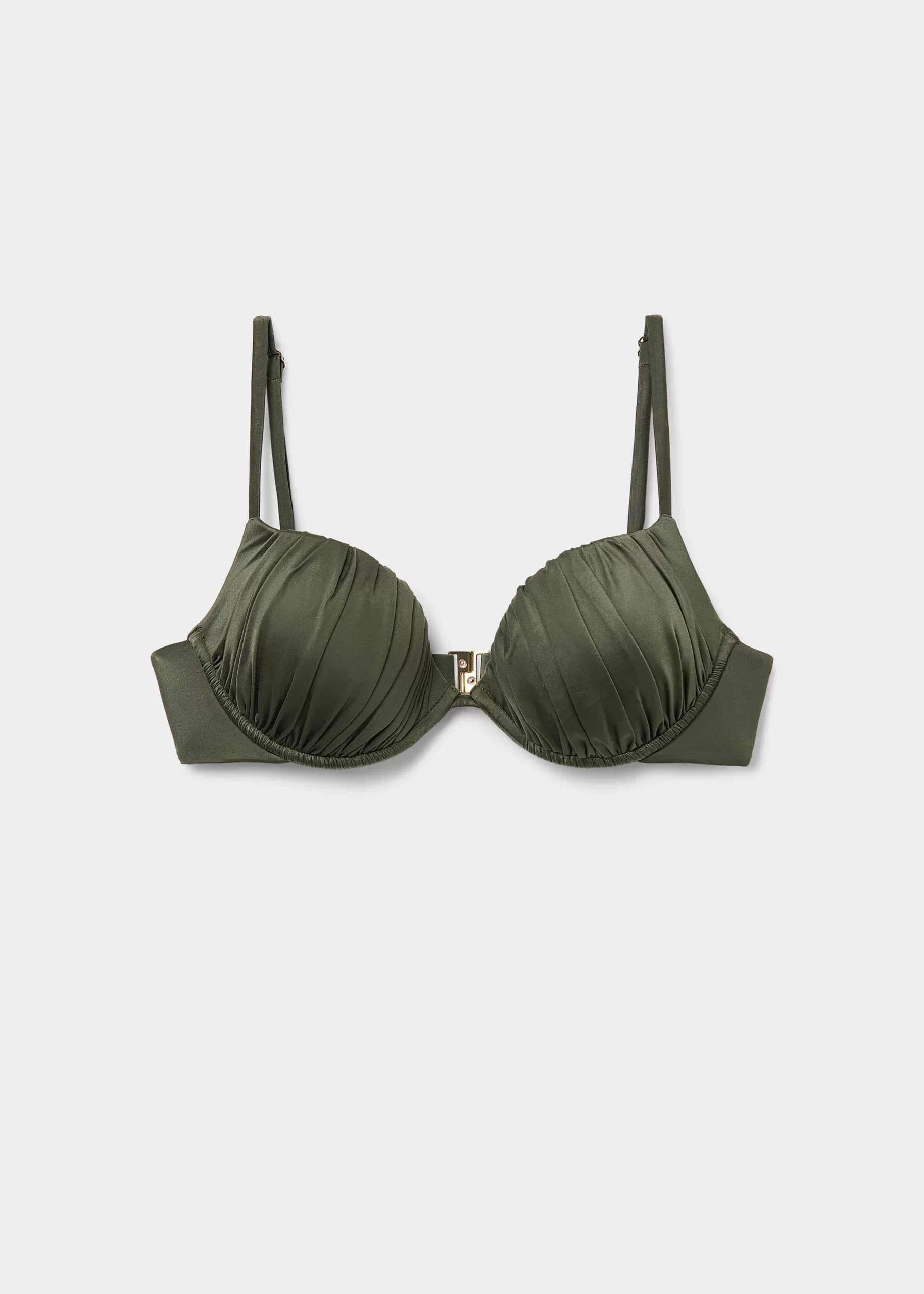 Push-up bikini top with lightly padded cups and underwire for support and volume. The style features shiny satin-effect fabric. Detachable shoulder straps that can be crossed over at the back or tied around the neck. Back clasp fastening with double adjusters.