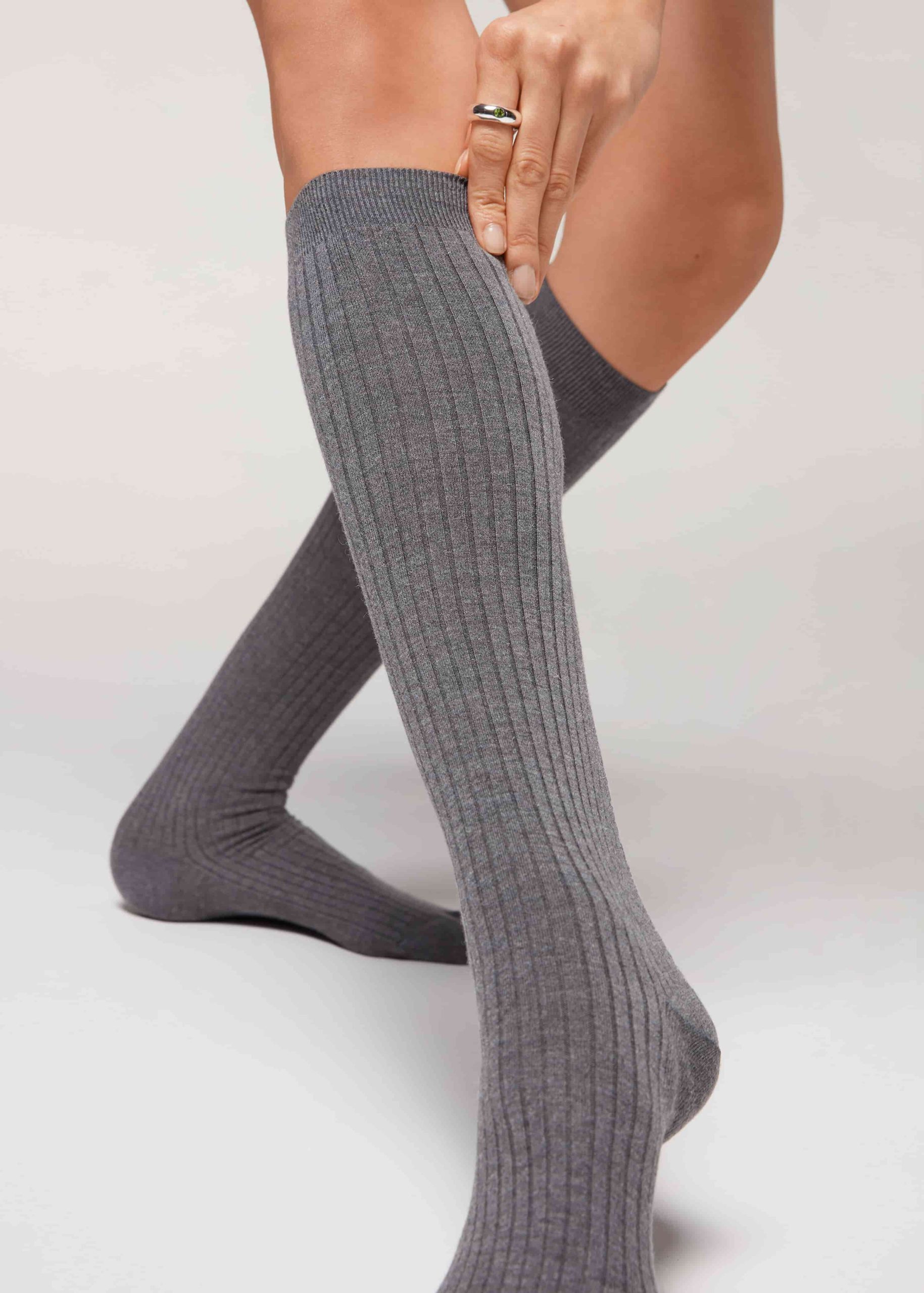Women’s ribbed long socks with soft cashmere, extra-warm and comfortable.