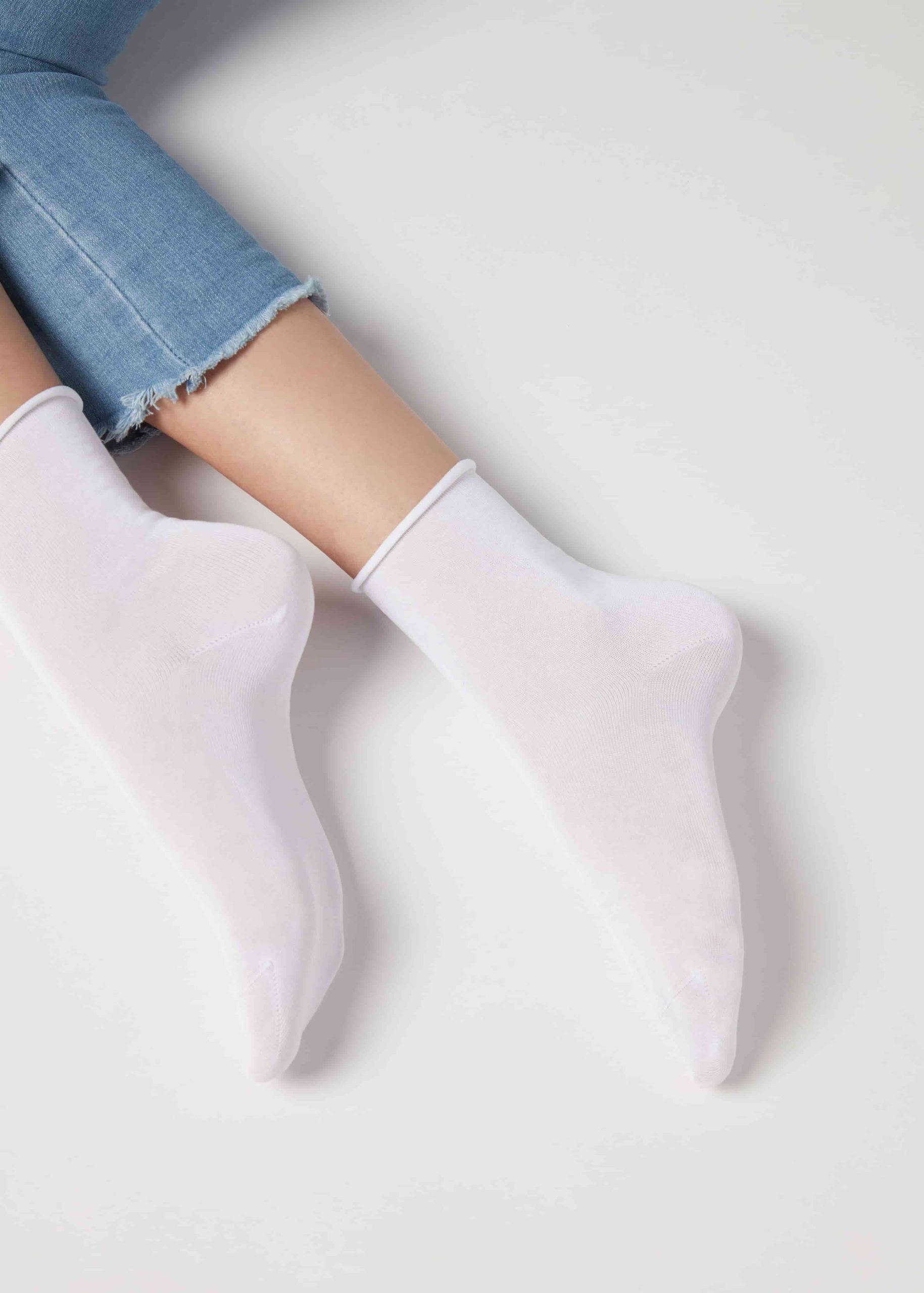 Short socks in lisle, a high quality, light material. Cut edge cuffs.