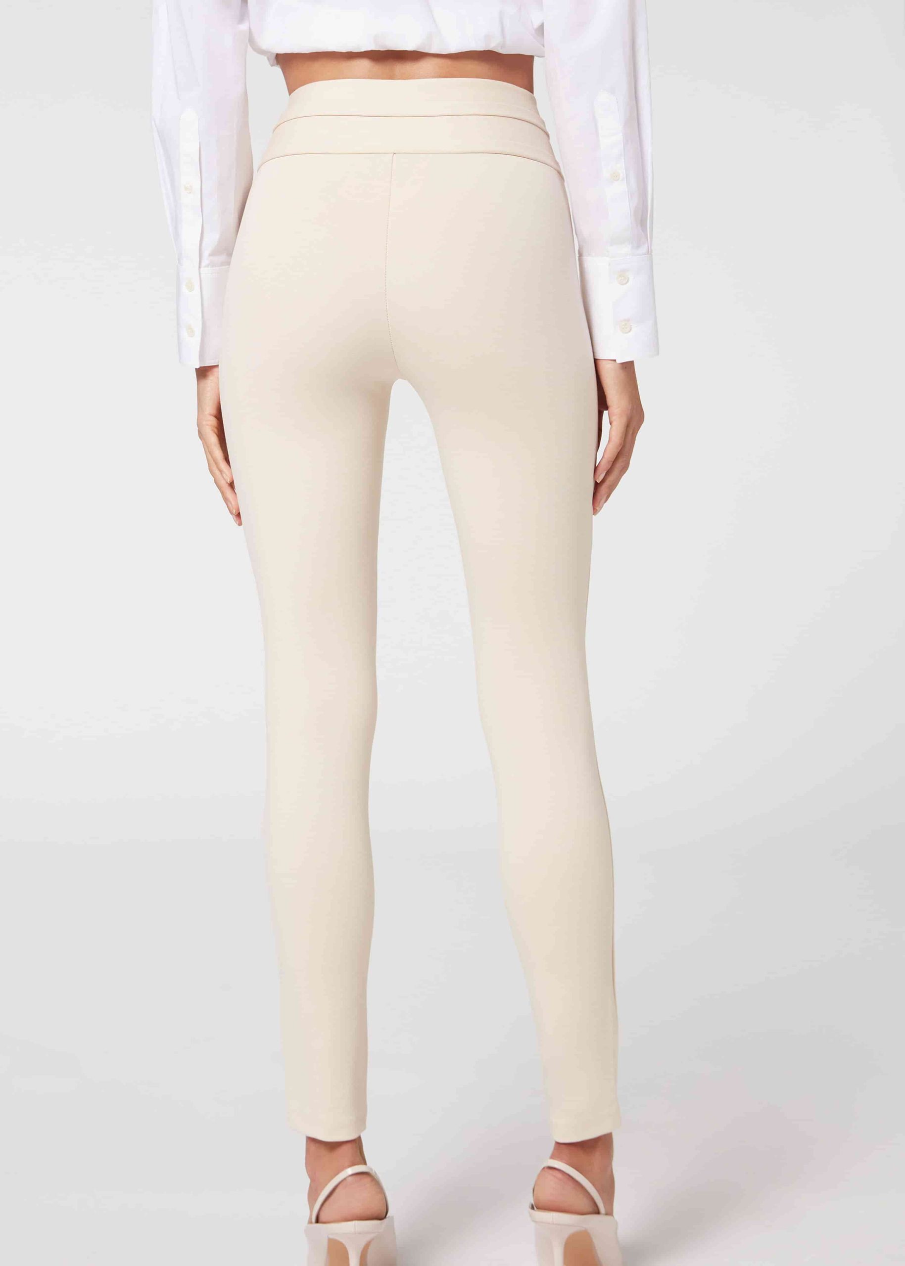 Skinny leggings, inspired by the classic sailor style, in compact shaping fabric. These shaping leggings envelop your curves in comfort and style. The decorative gold button details add a touch of sophistication, while the central seam and detailing at the waist give the garment structure and definition.