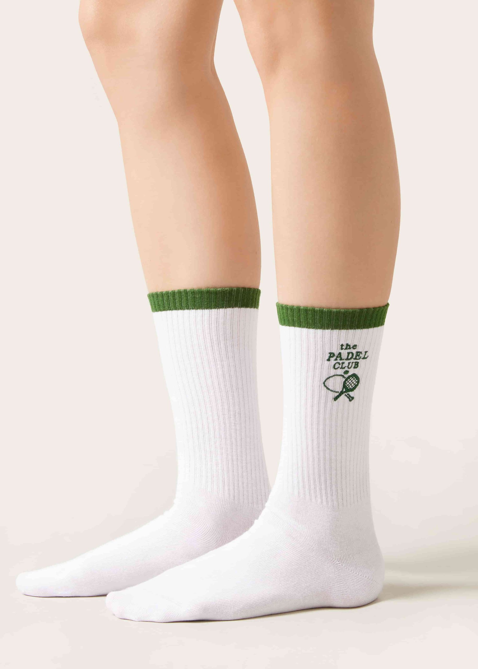 Short cotton socks in a sporty style featuring coloured bands and distinctive embroidery on the side. Comfortable and fashionable, they are perfect for a dynamic and vibrant look.