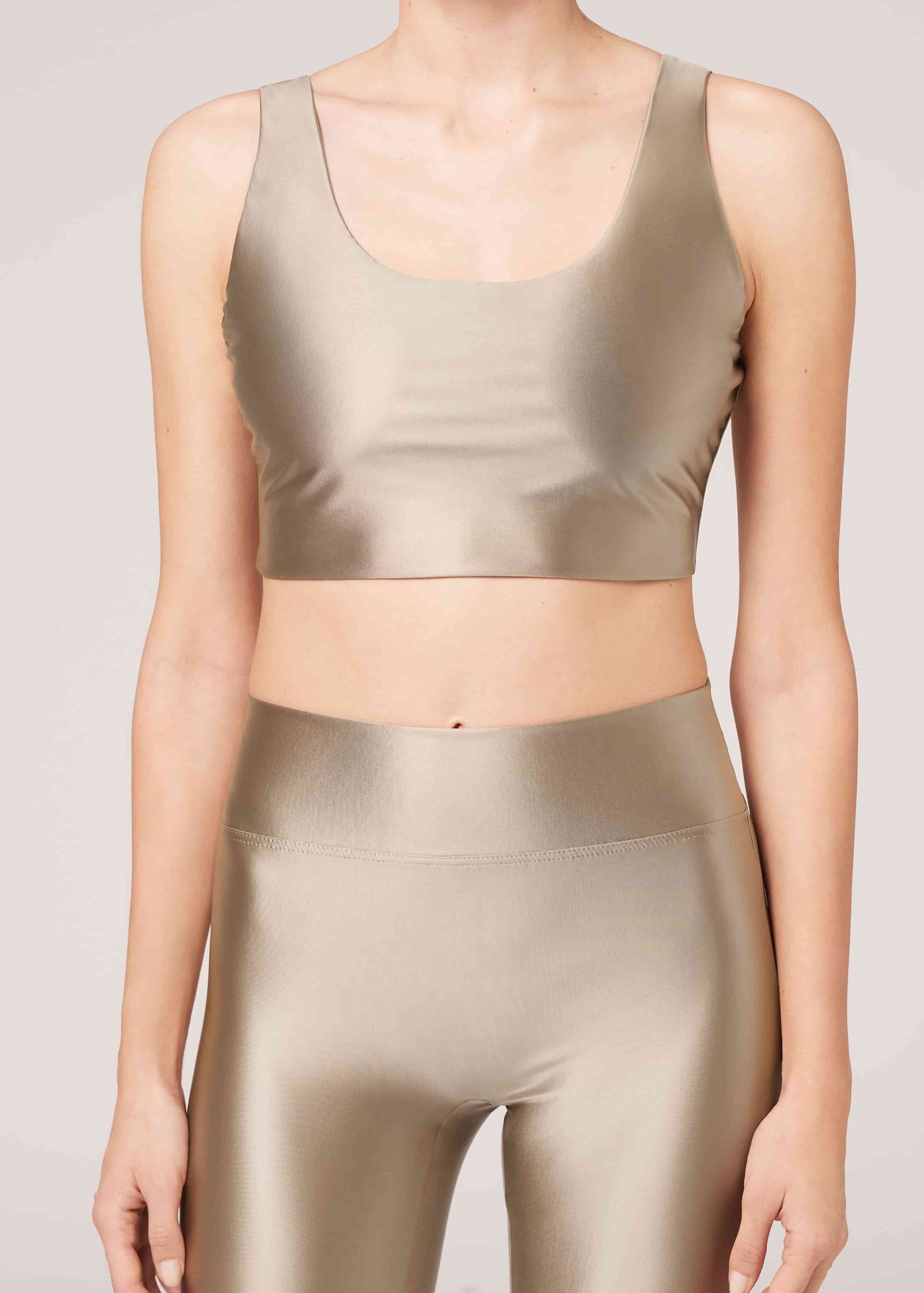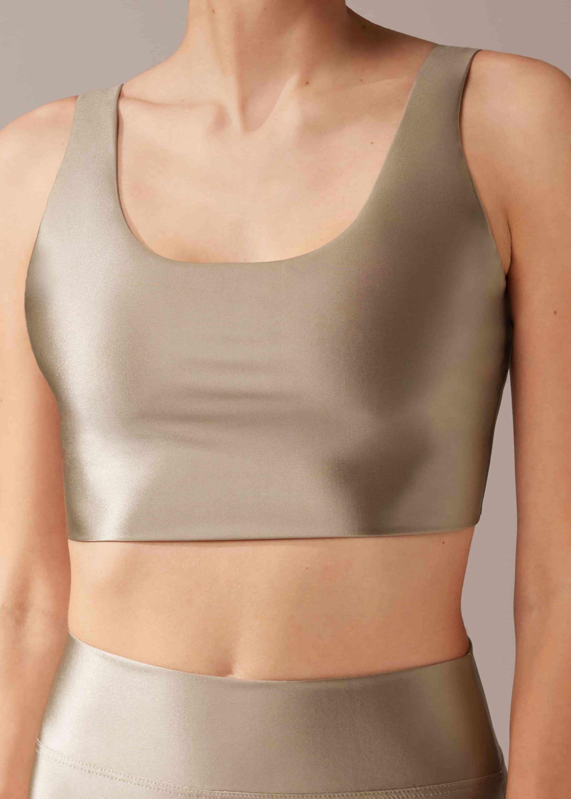Women’s top in super soft-touch, silk-effect, stretch satin fabric. Round neck and wide shoulder straps. Comfort gusset. Ideal for pairing with the satin leggings.