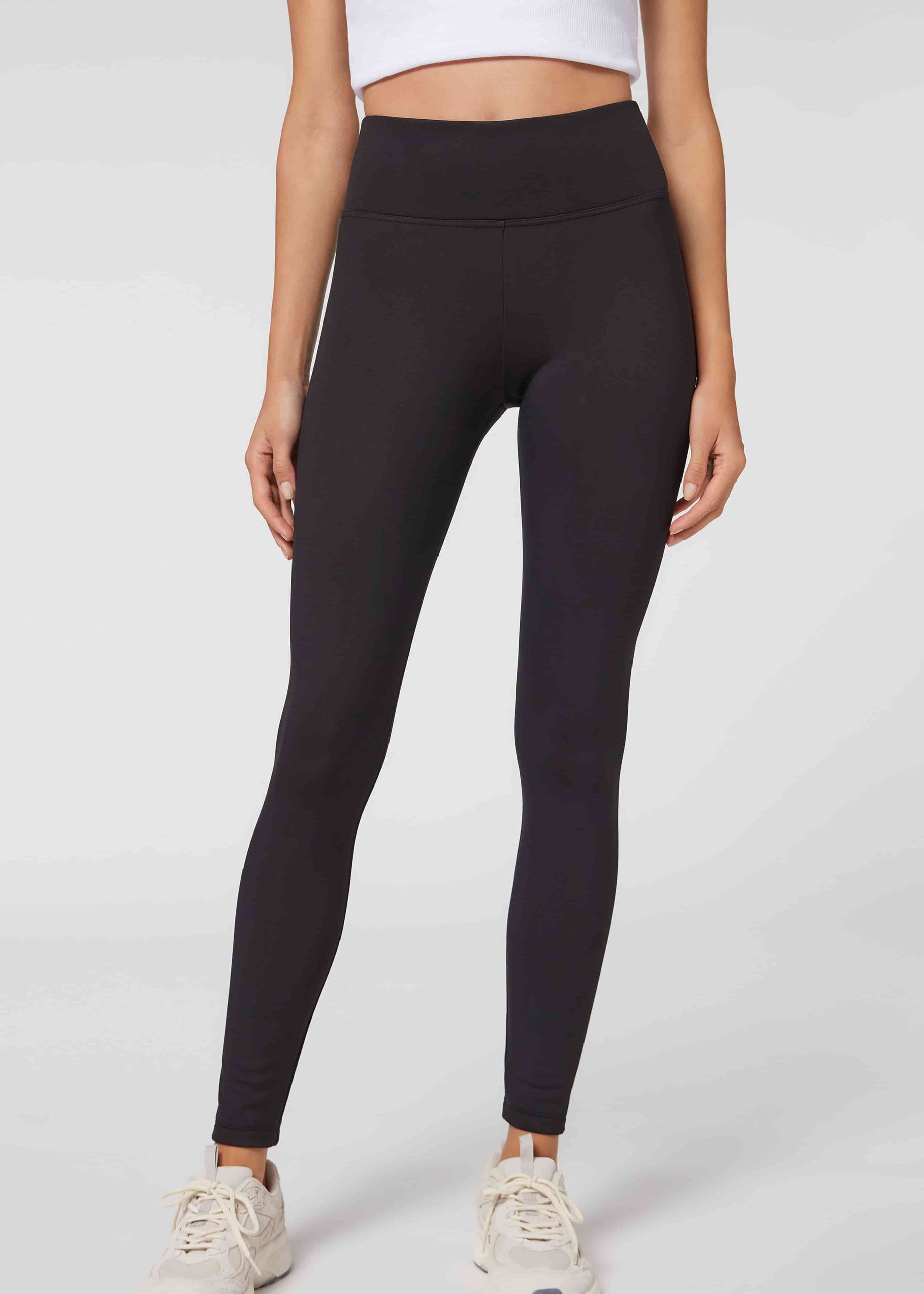 Women’s fitness leggings made from a warm and comfortable technical fabric with soft, brushed interior. Waistband high at the waist with patch on the inside that provides support and comfort.