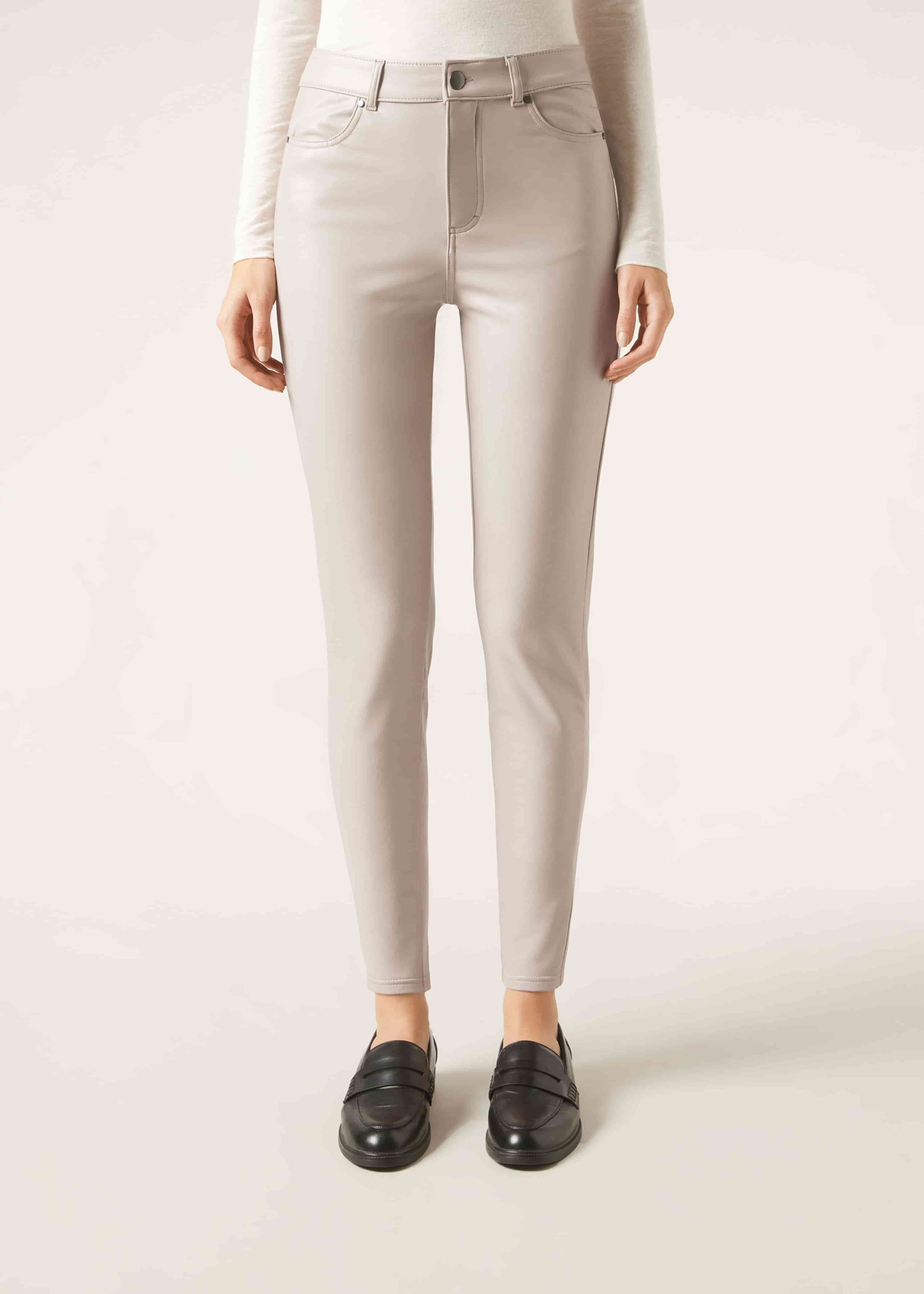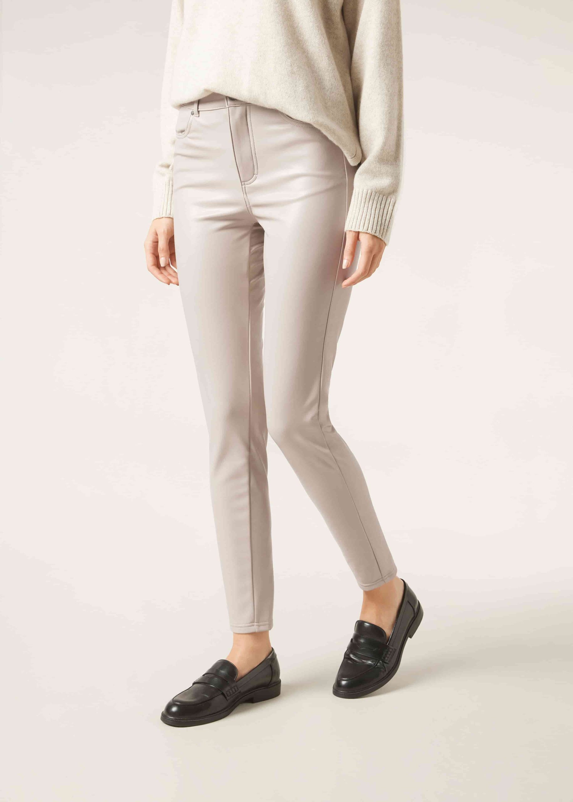 Leather-effect thermal pants with real pockets at back. Zip & button closure. Fleece insert inside.