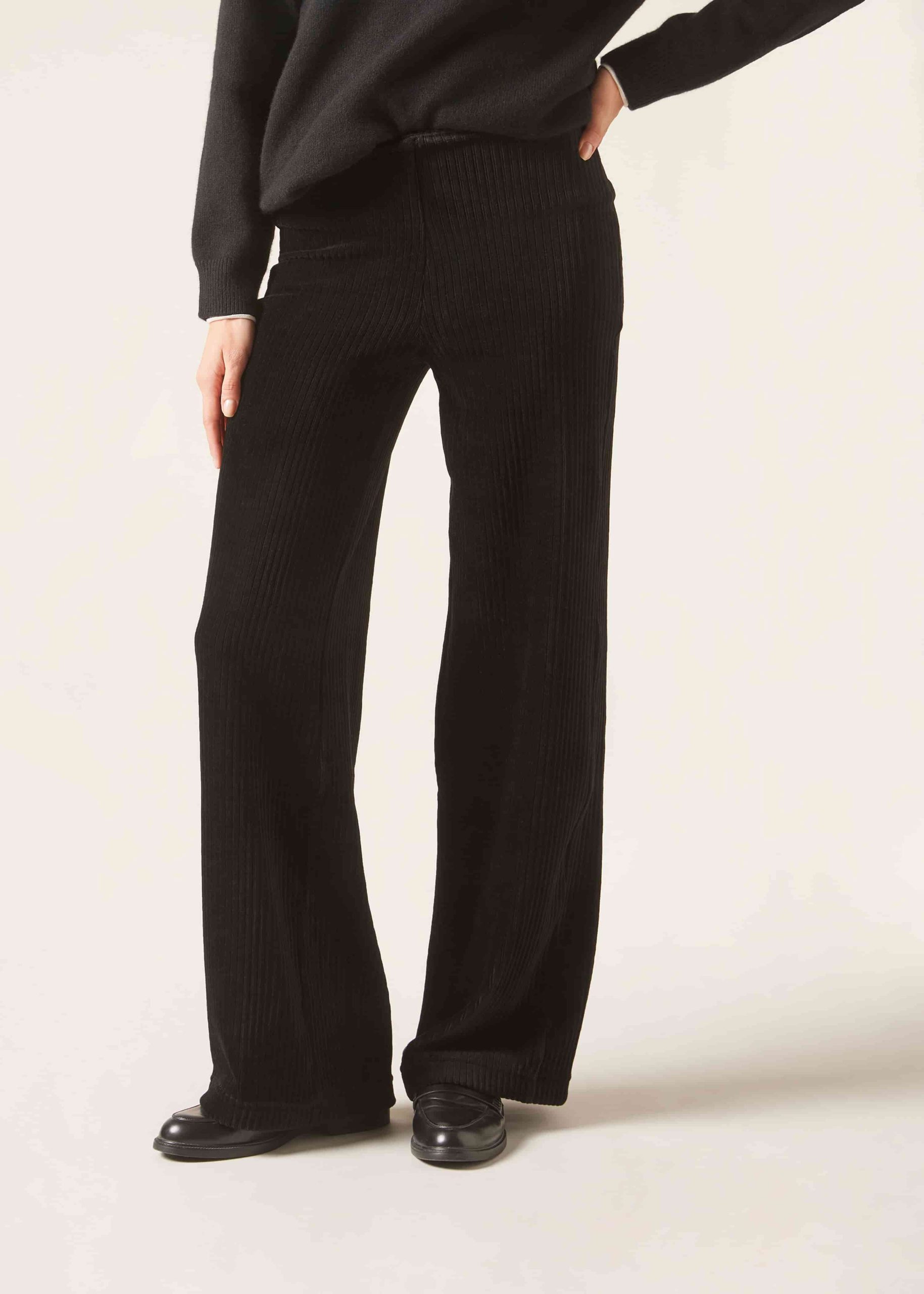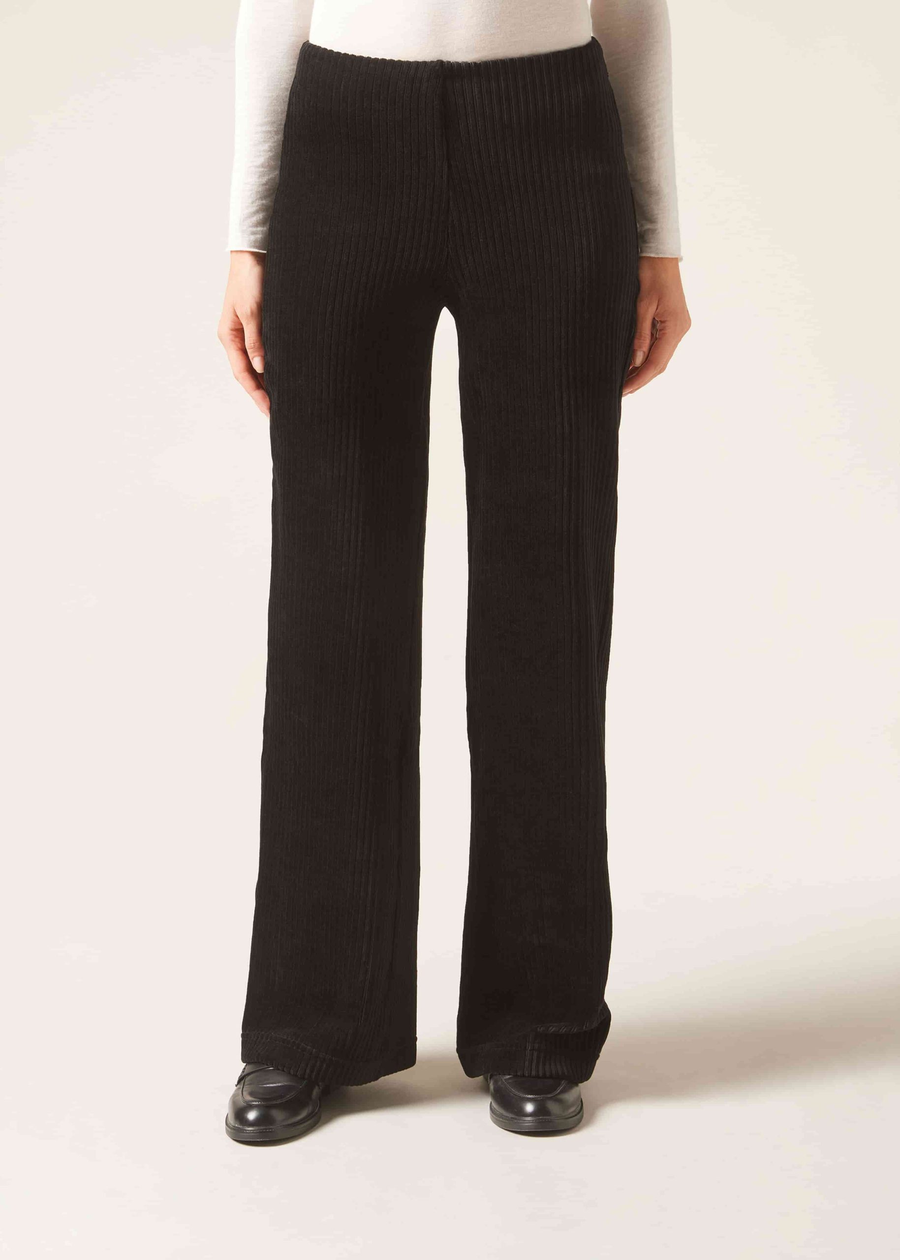 Women’s palazzo trousers in wide-rib stretch velvet for an on-trend look that combines comfort and style. A clean waistband with elastic at the back only offers optimal grip and maximum comfort. These palazzo trousers are made from stretch velvet and feel lovely on the skin while offering freedom of movement.